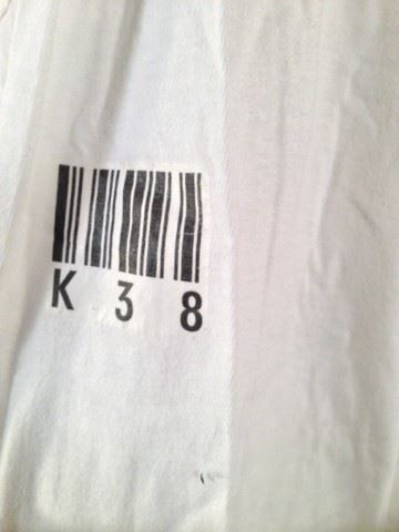 Screen worn, survivor outfit:(XL) cotton"J Crew" white pants and cotton shirt, each shirt has a barcode on the left shoulder with 3 numbers and right arm of shirt has been ripped off for production. Oufits are production soiled with dirt and blood stains.