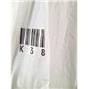 Screen worn, survivor outfit:(XL) cotton"J Crew" white pants and cotton shirt, each shirt has a barcode on the left shoulder with 3 numbers and right arm of shirt has been ripped off for production. Oufits are production soiled with dirt and blood stains.