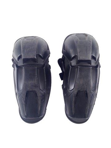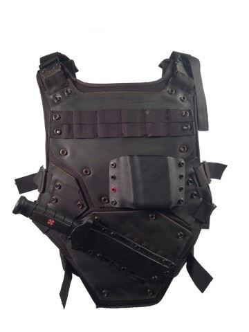 Umbrella Trooper screen worn, production distressed black vest with knife, arm pads, knee pads, and a black belt.