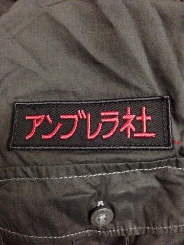 Umbrella Trooper black button front 'Calvin Klein' dress shirt with Umbrella Trooper patches on either shoulder (m). From Resident Evil: Afterlife.