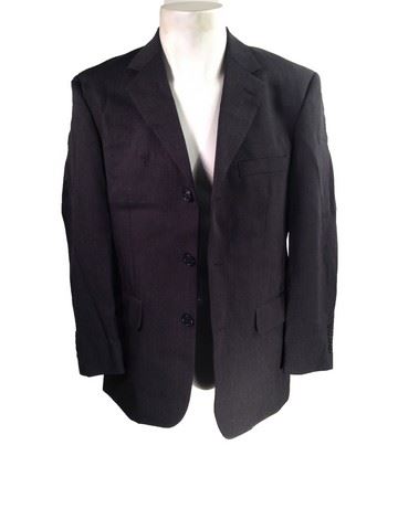Undead (Phillip Chang) screen worn, production distressed, charcoal black suit coat with tears on the front and inside. Seen suddenly coming to life in a deserted intersection in Resident Evil: Retribution.