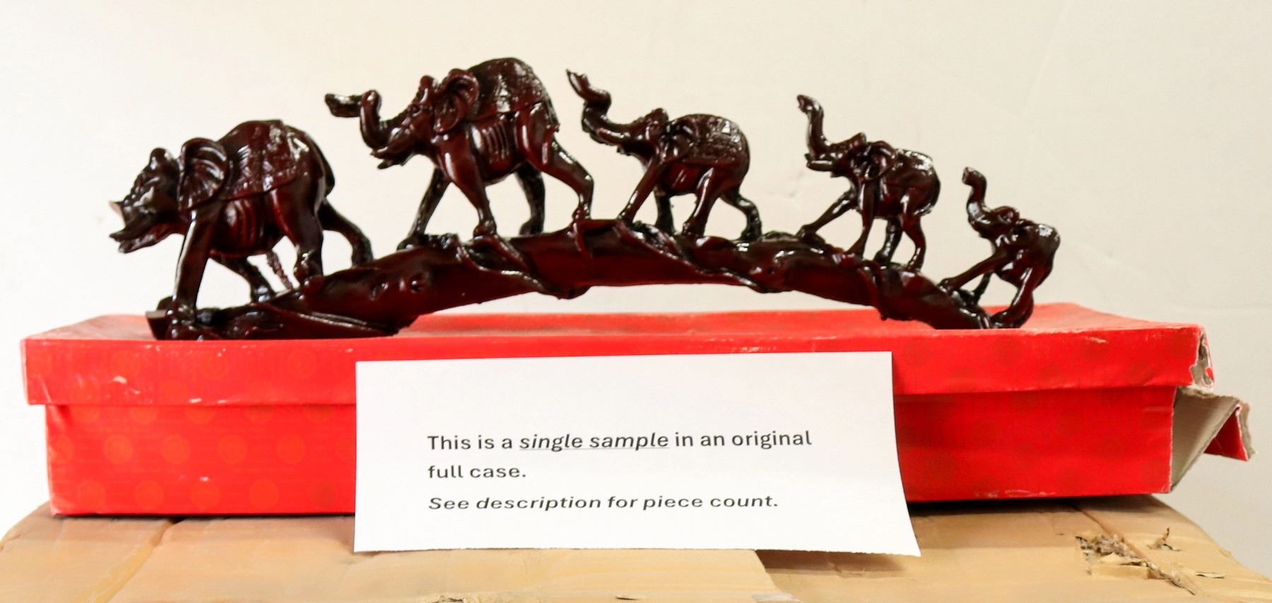 12 sets of 5 Resin elephant trains, 4x17", in original boxes. These items have been in storage for 20 years and have not been inspected. Sold as is.