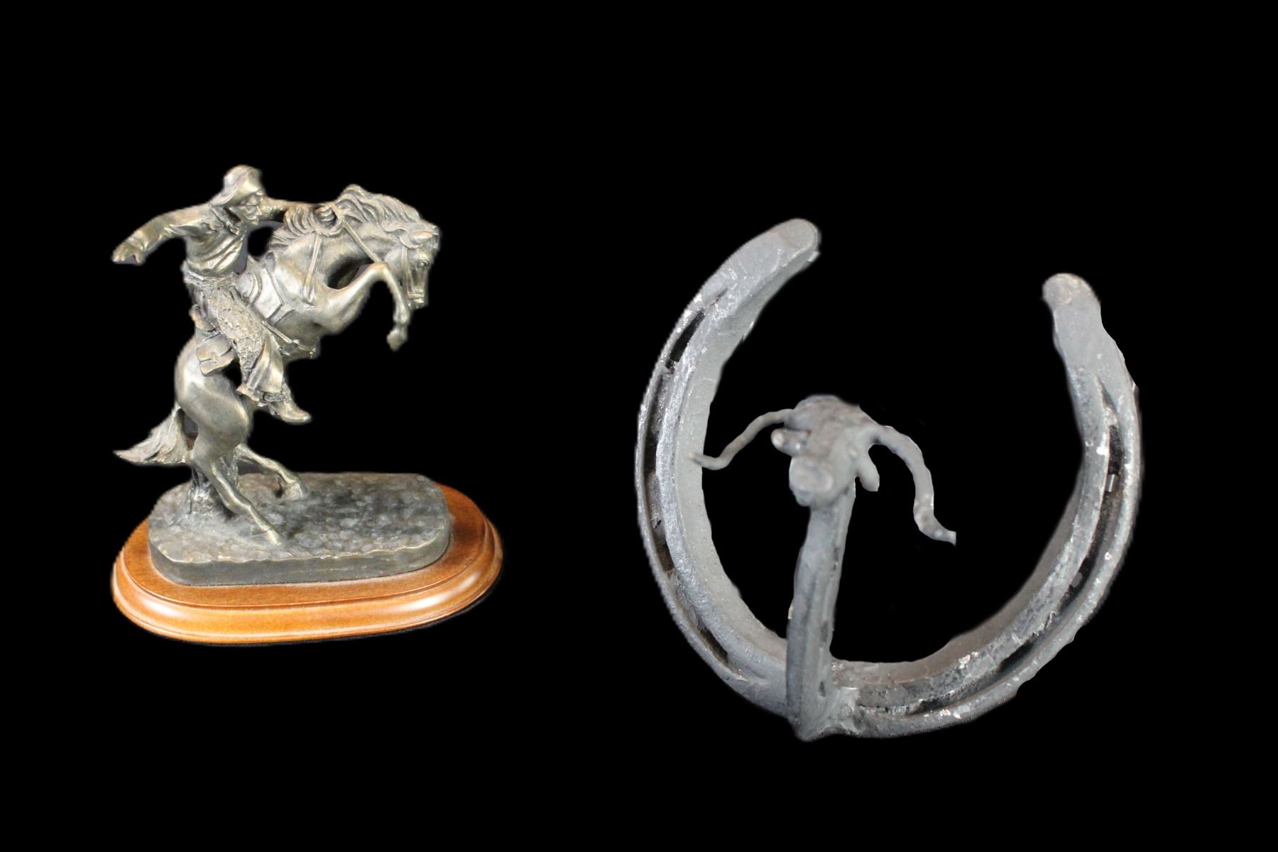 Resin Cowboy On Bronc- 5.25" X 4.5"- Horseshoe Art Steerhead- Ernie Morris Collection