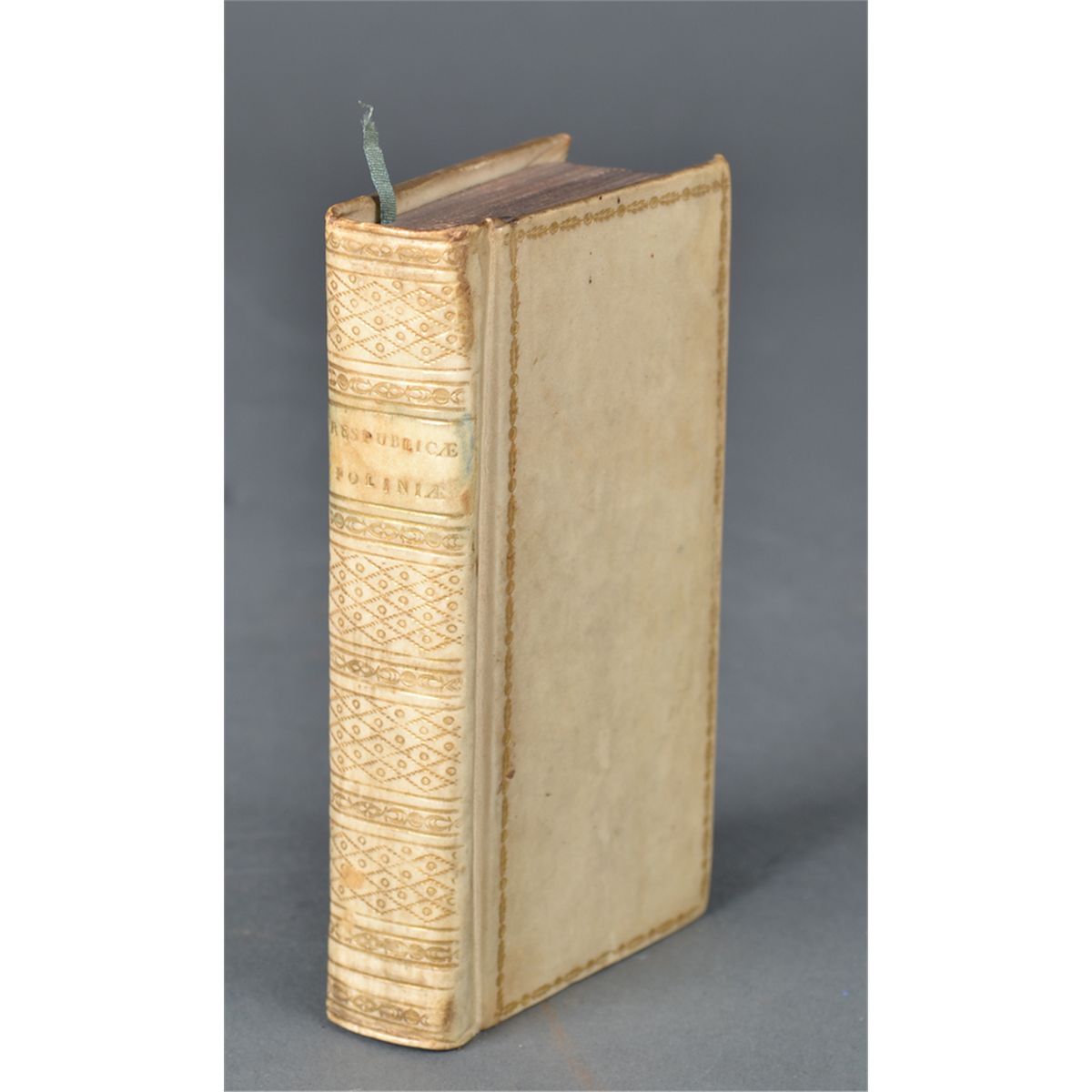 Titled "Respublica, Sive Status Regni Poloniae, Lituania, Prusiae, Livonia, Etc. Diversorum Aurotrum." (Lugduni Batavorum: Ex Officina Elzevirian, 1642). Third edition. Quite attractive 19th century vellum, decorative gilt border on covers, spine intricately gilt in compartments, marbled end papers. Engraved title. Bookplate of W. Arundell Harris. Willems 546. Leaves a little darkened at edges, vellum just very slightly soiled, otherwise a fine copy. This anthonogy on Poland contains extracts from the works of Krzysztanowicz, Cromer, Lasicki, Neugebauer, De Thou, Botero, and others with commentary groupied under various headings, including a short "Judicium de Polonia" by John Barclay. 4.5" H x 2.5" W. Private collection of the late Benedict Markowski, a long time archivist of the Detroit Public Library.