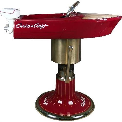 Restored "Chris Craft" Kiddie Boat Themed Barber Chair All Maroon & Brass