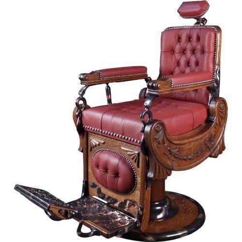 Restored "Koken" Oak Barber Chair Heavily Carved with Genuine "Oxblood" Leather and Plating done as original in Antique Copper Flash