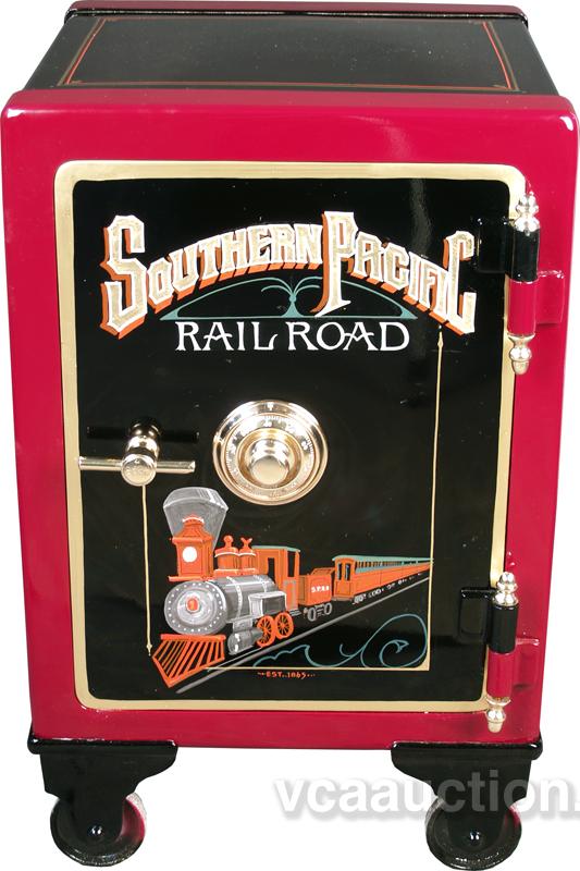 Restored Medium Size Safe Black w Nickel Trim Southern Pacific Rail Road Motif All Handpainted Artwork