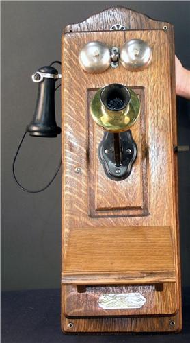 Restored wooden wall telephone Tag says: Montgomery Ward & Co. "Thornward" Chicago & Kansas City