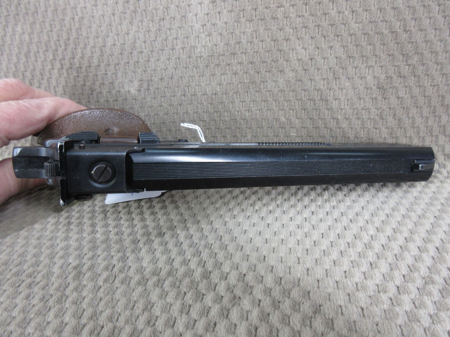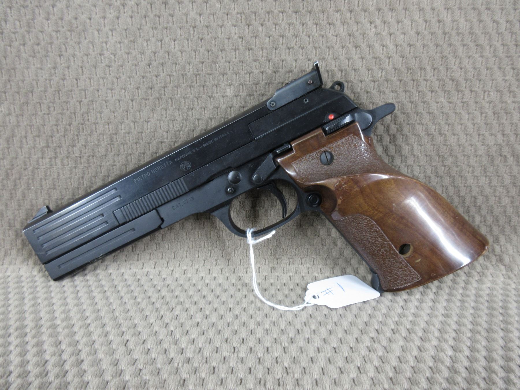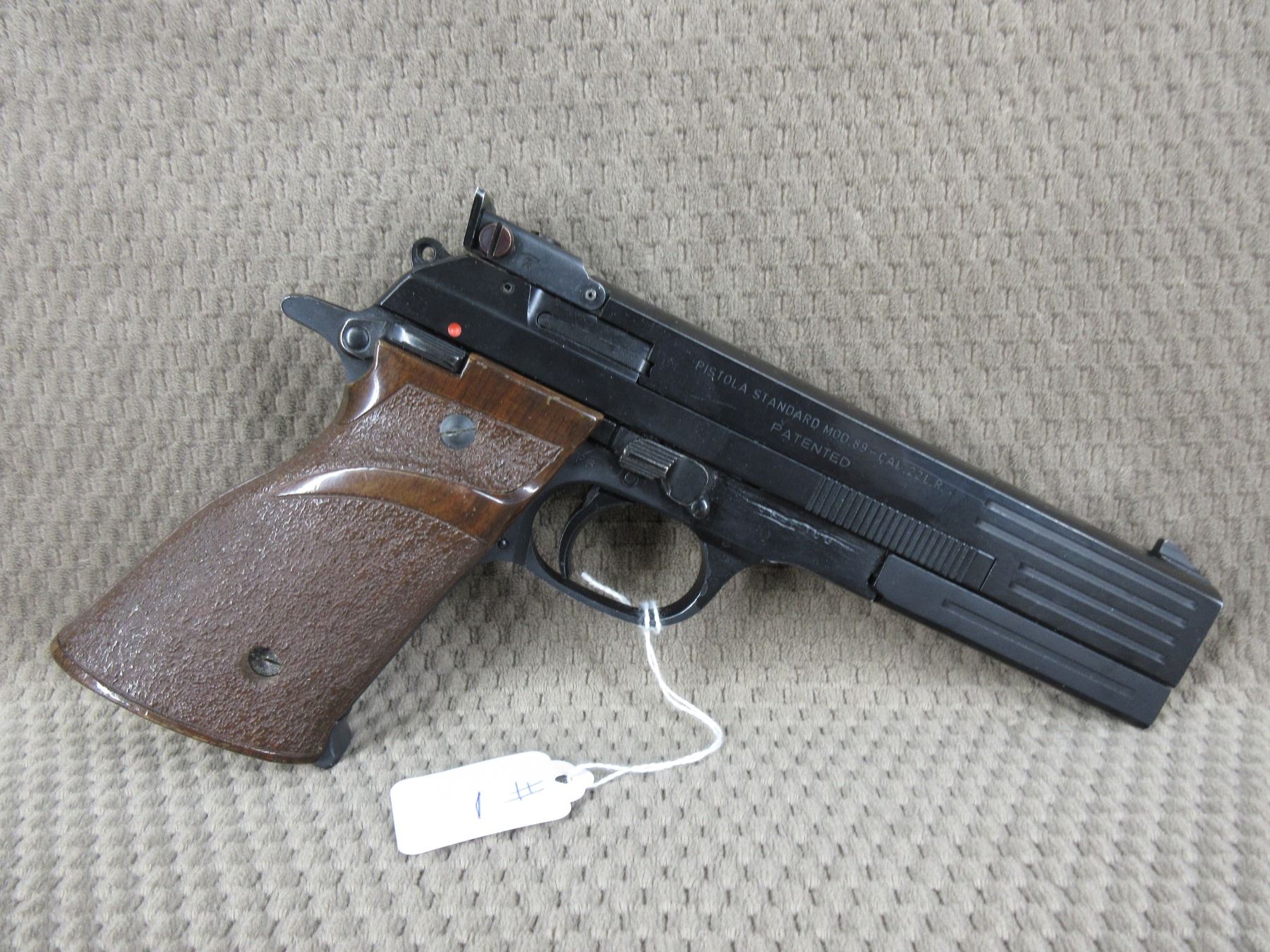 Restricted - Beretta Model 89 Gold Standard Target in 22 LR - This semi-auto handgun appears to in good to very good working order and comes with magazine. Barrel is 152mm, rifling is very good, bluing is very good, has both sights, grips are very good with some usage marks. The area where the serial number is stamped has been damaged (finished repaired) but the number can still be read if you know what it is. The serial number is also stamped under the grips.