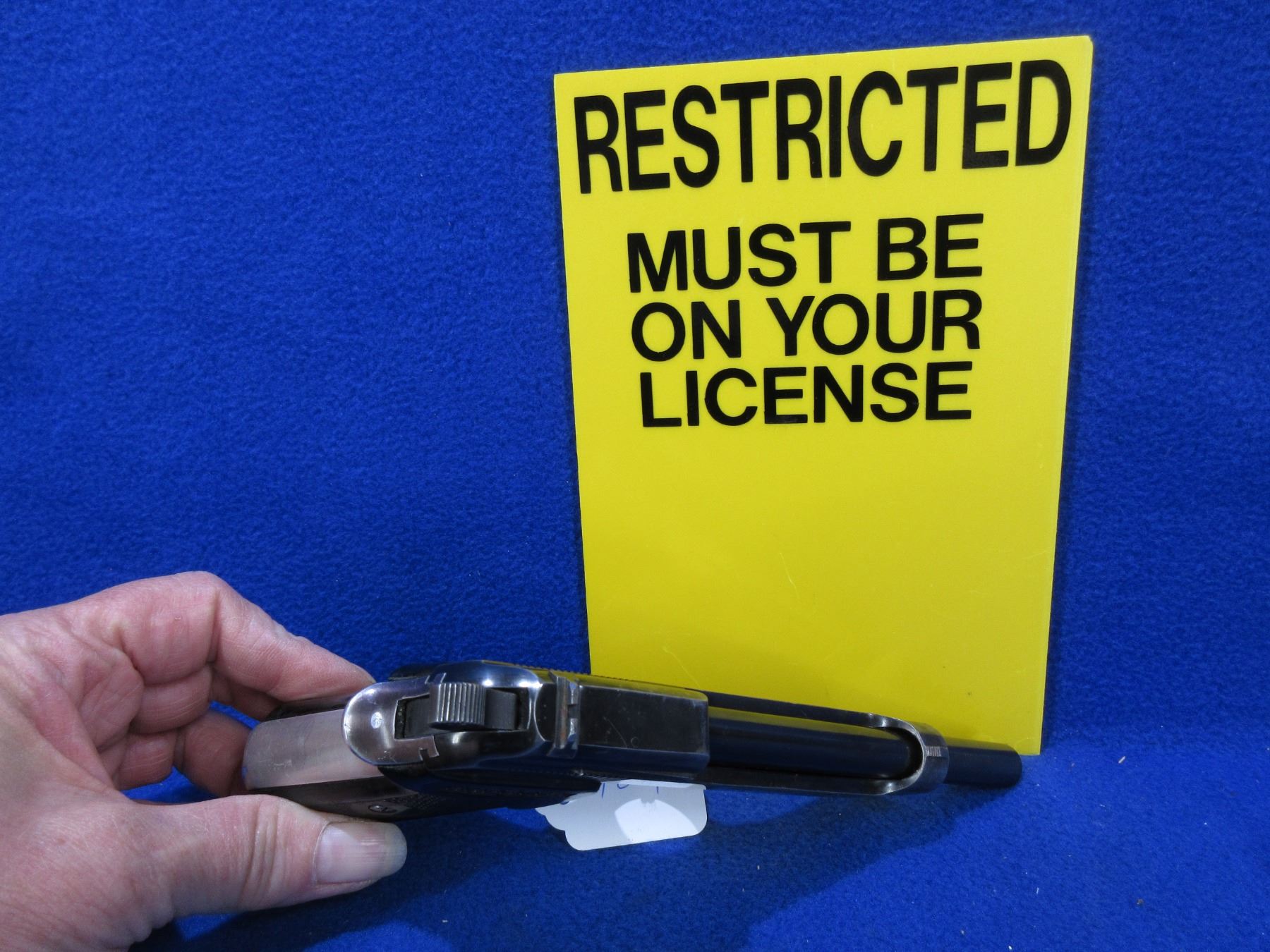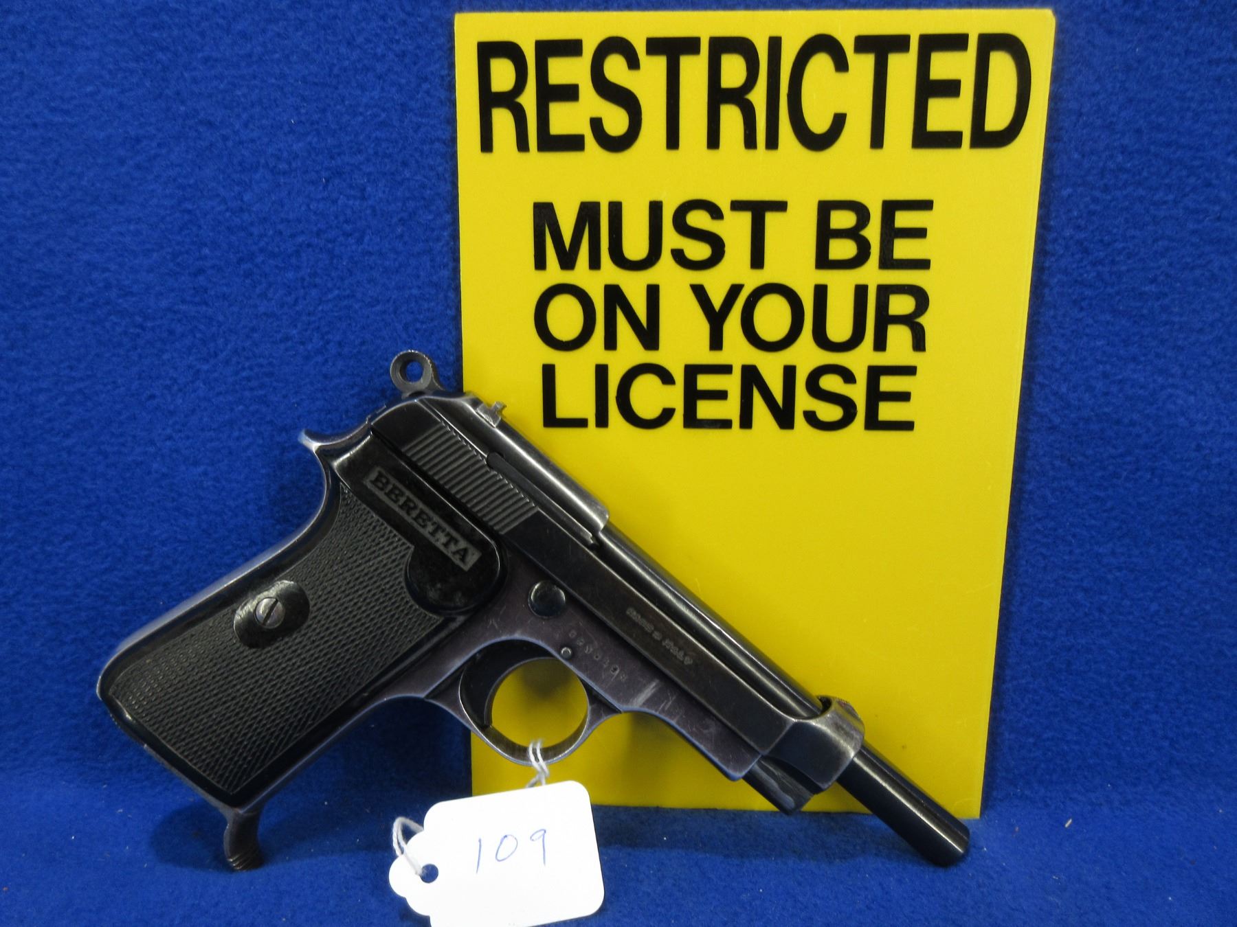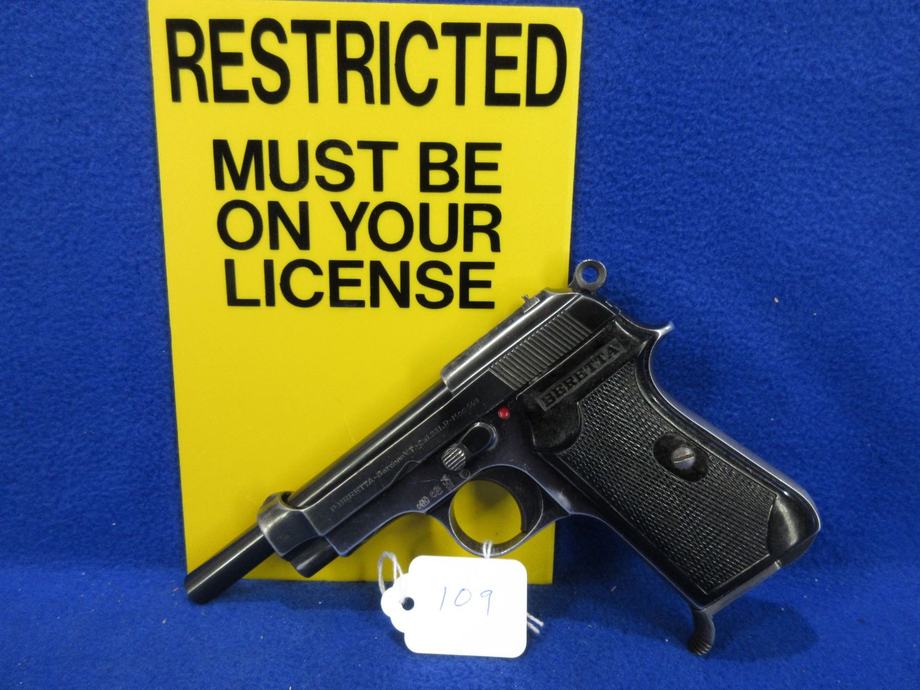 Restricted - Beretta Model 948 in 22 LR - This semi-auto pistol with 10 round magazine appears to be in good to very good working order. Barrel is 110MM, rifling good to very good, bluing good, has fixed sights, synthetic grips are good to very good. Manufactured in 1954. Ser # 043819N
