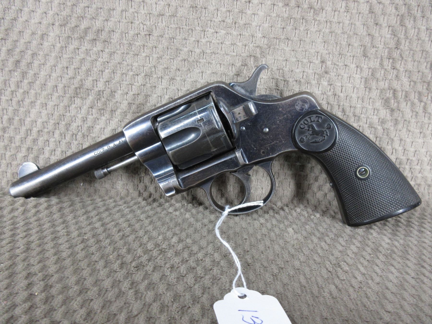 Restricted - Colt 1892 Navy & Army Revolver in 41 Long Colt - This double action revolver revolver needs hammer repair as firing pin has been cut off, gun appears to in good working order otherwise. Barrel is 114mm, rifling is good with some pitting, bluing is fair to good and turning grey, has both sights, grips are very good. Does not seem to be numbers correct. Comes with case.