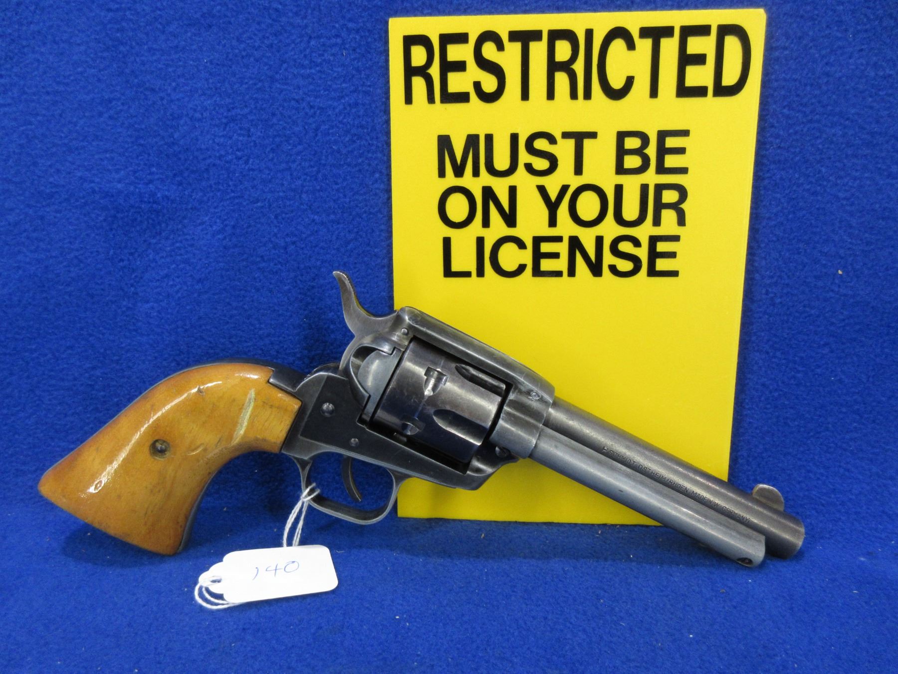 Restricted - Herbert Schmidt Model 21 in 22 LR - This single action 6 shot revolver appears to be in good to very good working order. Barrel is 120MM, rifling good to very good, bluing is mostly grey, has fixed sights, wood grips are good. Ser # 611169