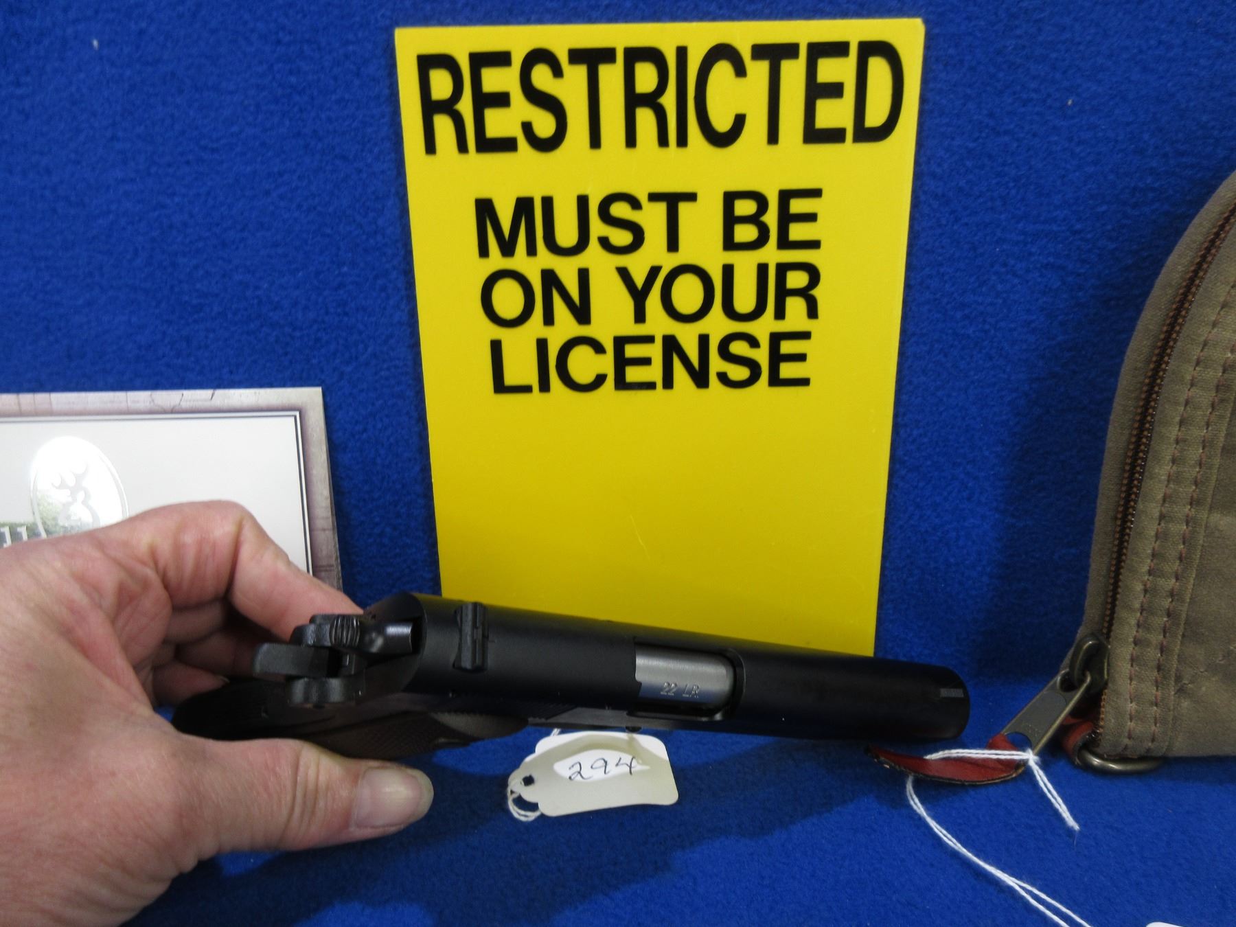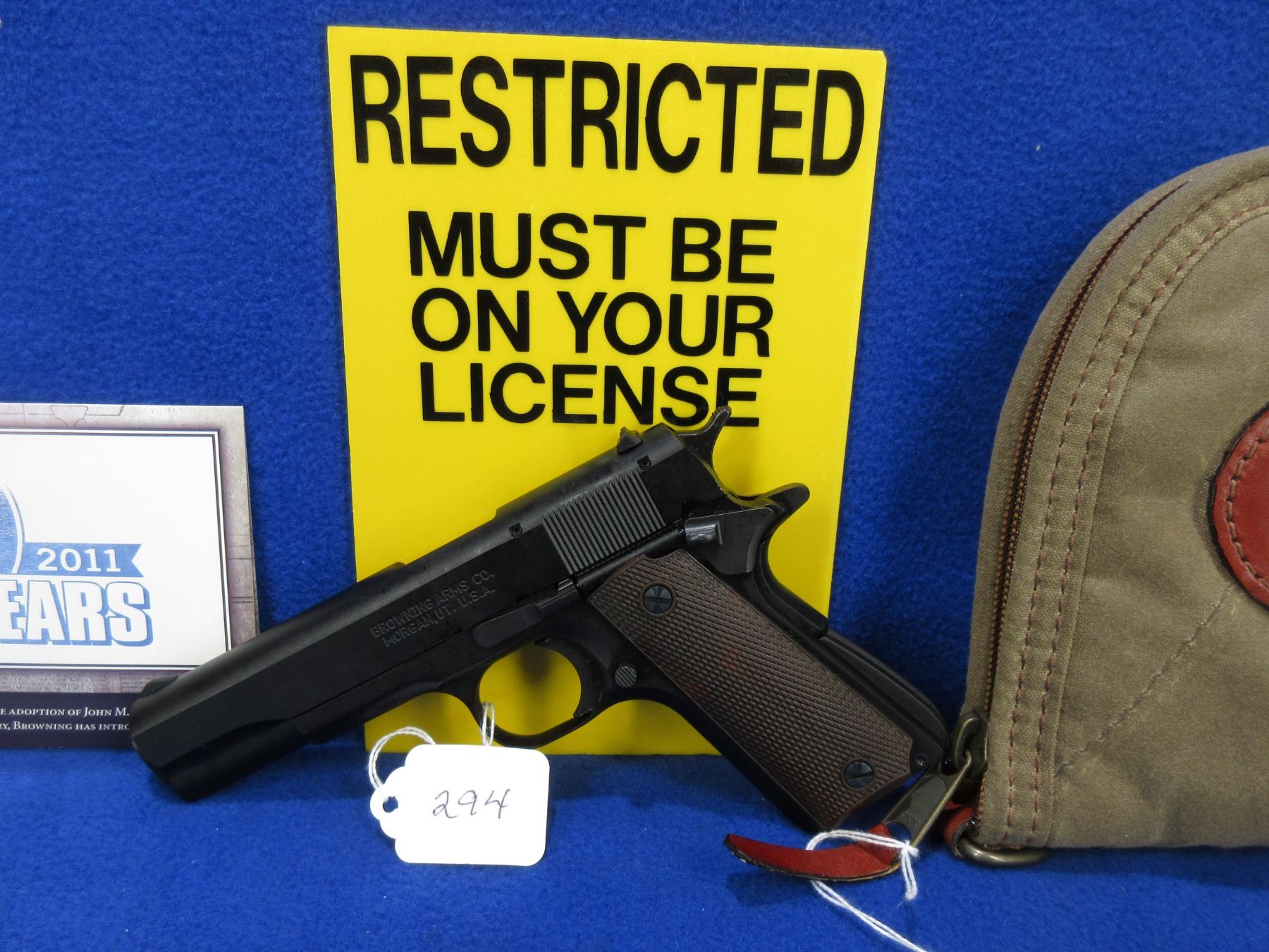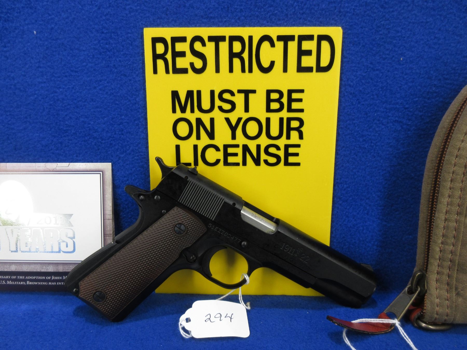 Restricted - NEW Browning 1911-22 in 22 LR - This semi auto pistol with magazine is NEW in box. 1911-2011 100 Years Anniversary Edition. Barrel is 108MM, has fixed front sight, adjustable rear sight, synthetic grips, comes with original anniversary case, paperwork and cable lock. Ser # 51EZZ02477