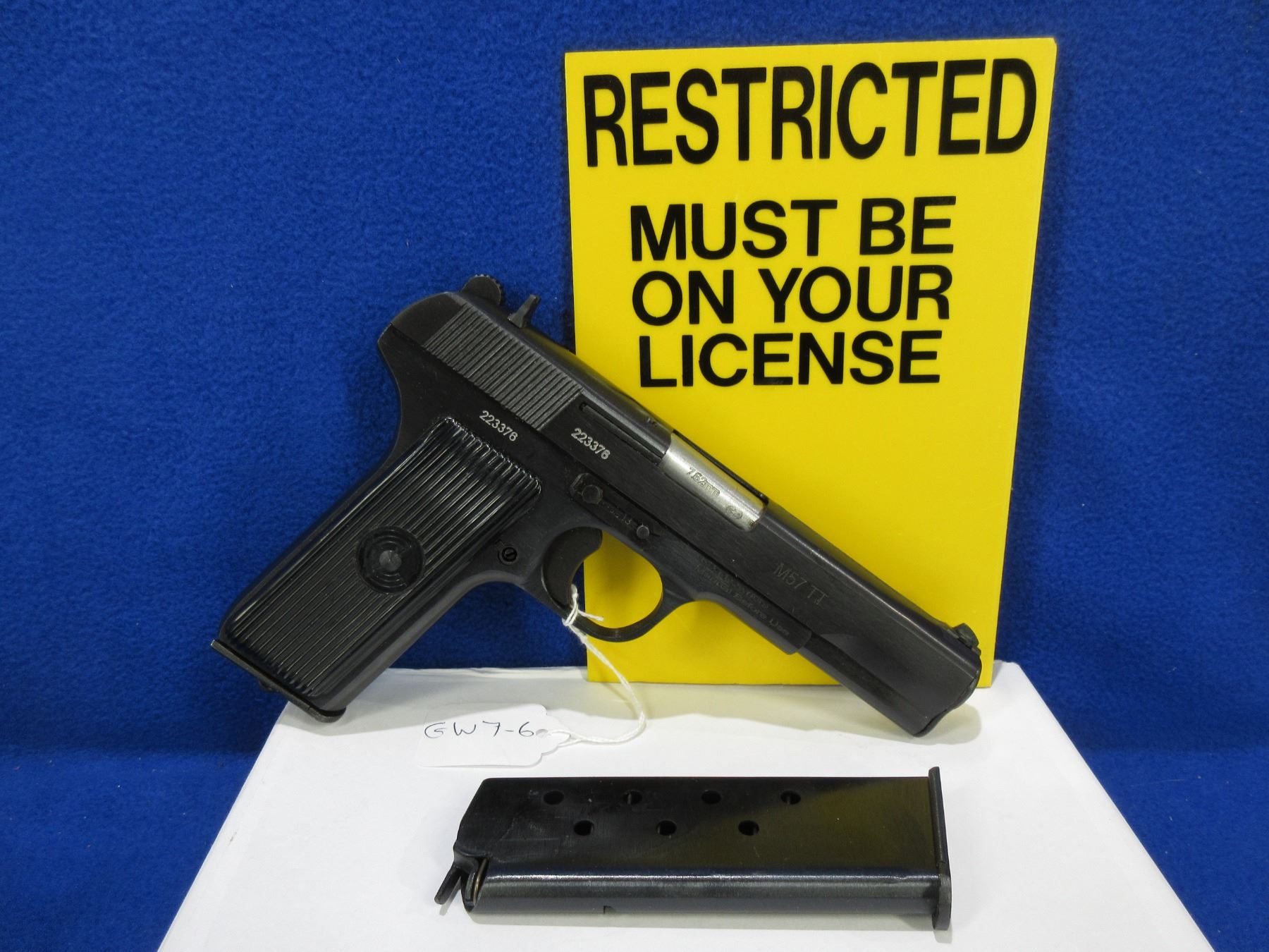 Restricted - NEW Tokarev Model M57TT in 7.62X25 - This semi auto pistol with 2 magazines is NEW in box. Barrel is 116MM, has adjustable front sight, adjustable rear sight, synthetic grips, comes with original box (damaged) and paperwork. Ser # 223376