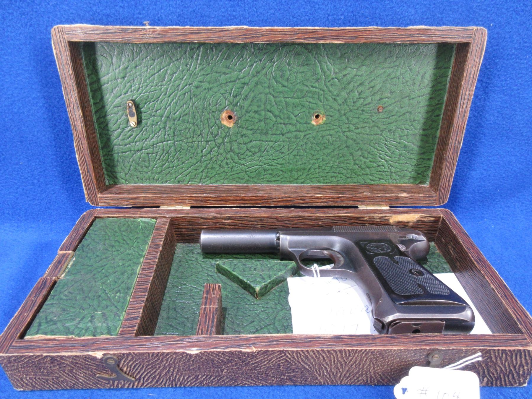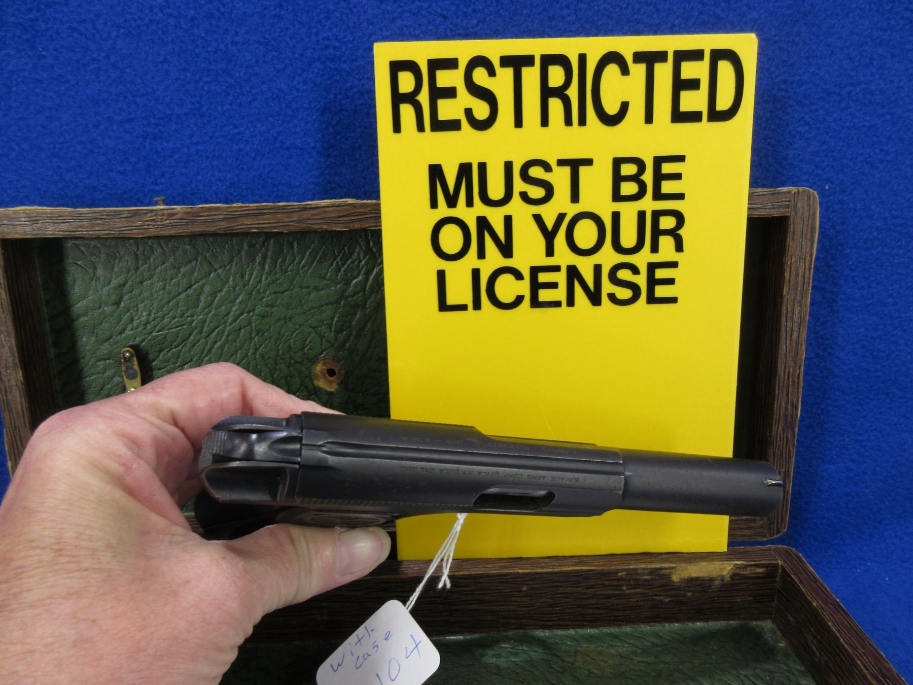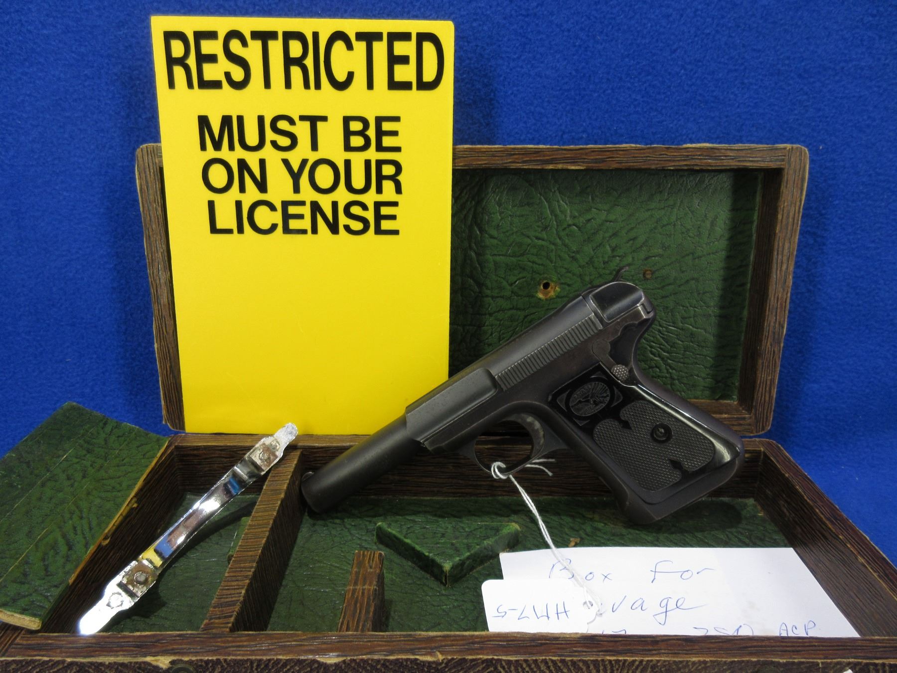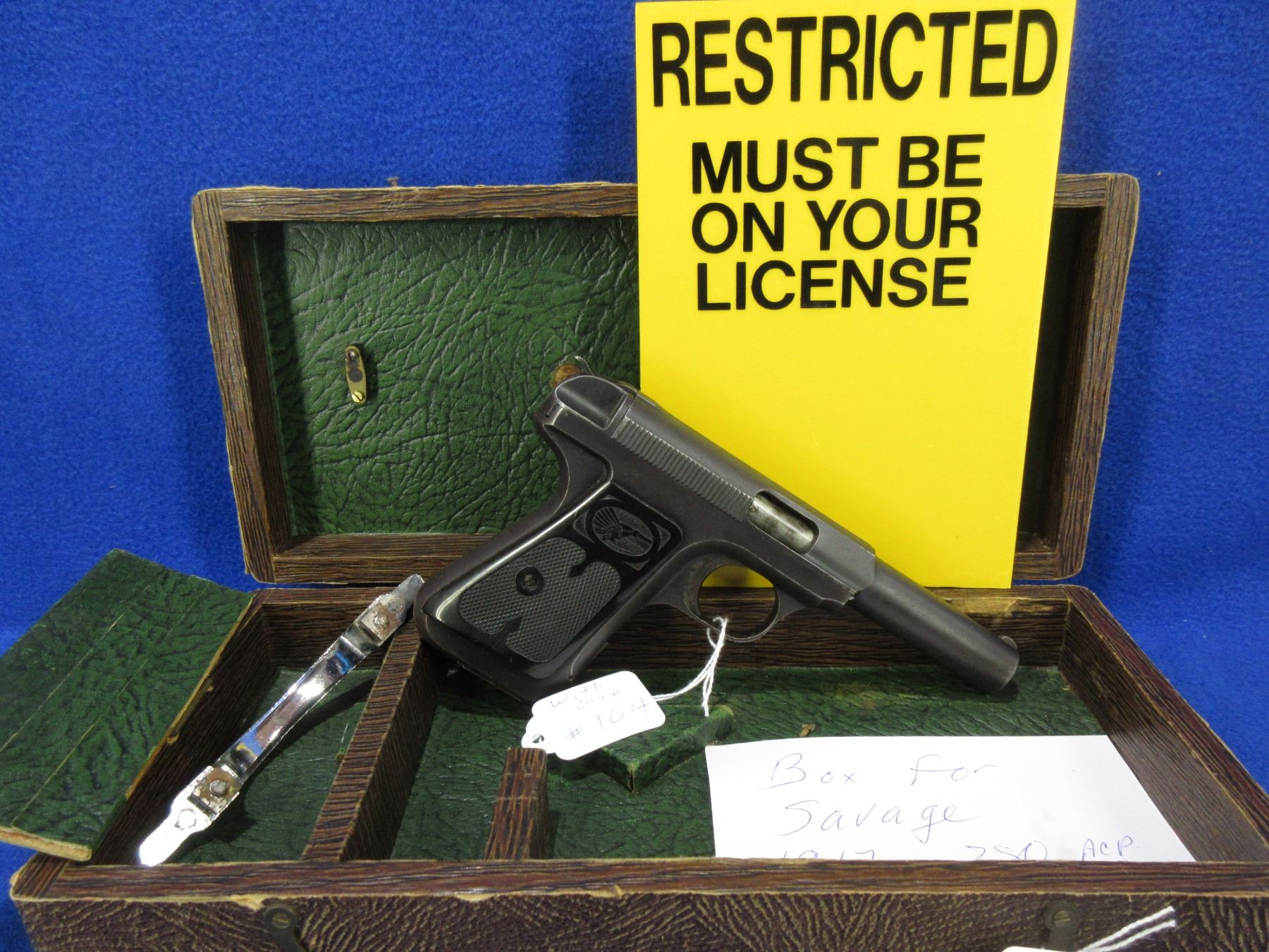 Restricted - Savage 1917 in 380 Cal. - This semi-auto pistol with magazine appears to be in good to very good working order. Barrel is 108MM, rifling is good to very good but a bit dark, bluing is good to very good, has fixed sights, grips are good to very good, comes with a box. Ser # 29060B