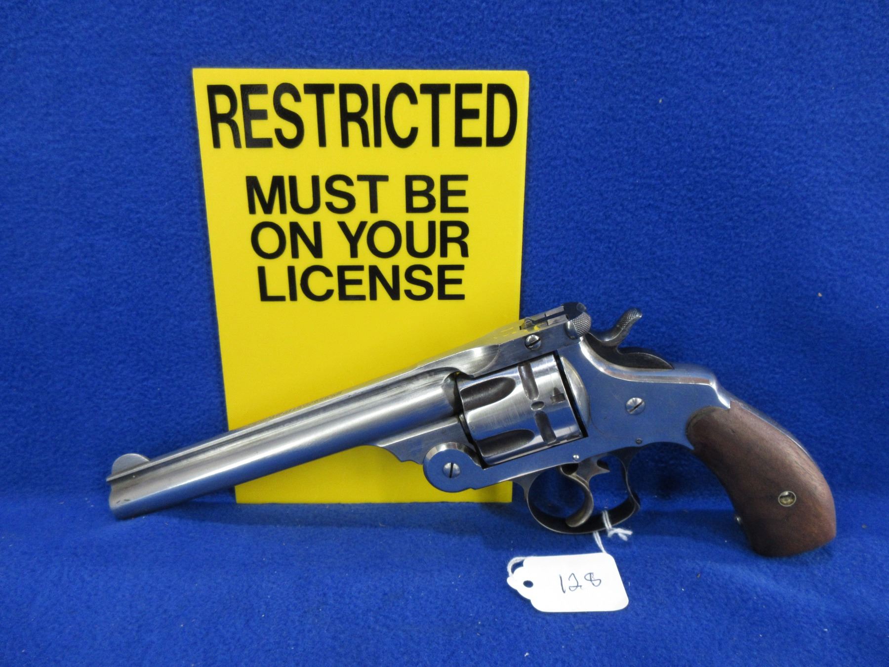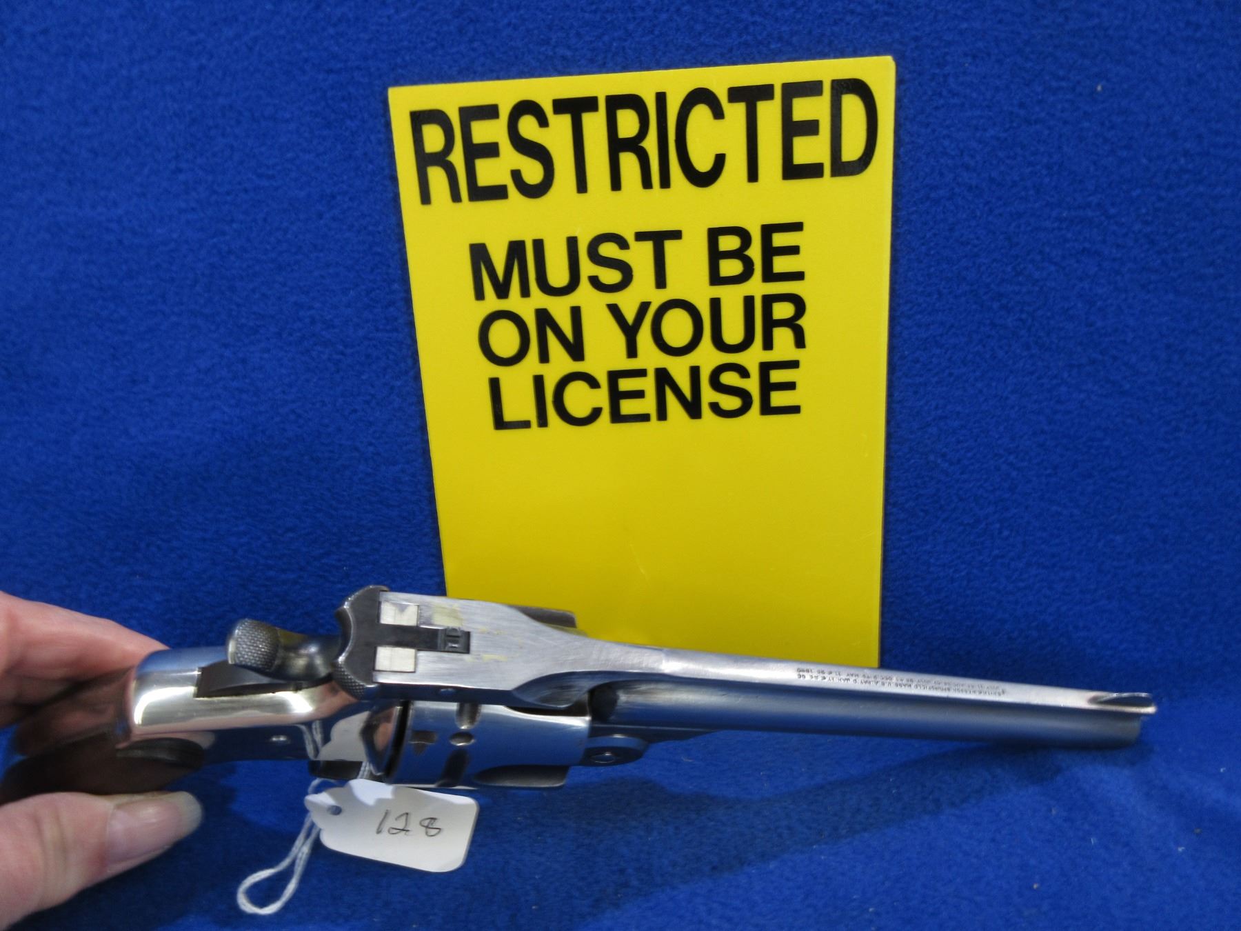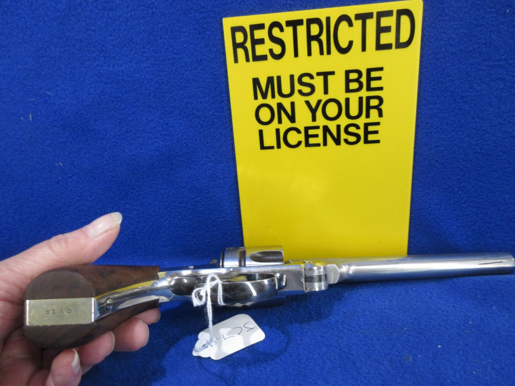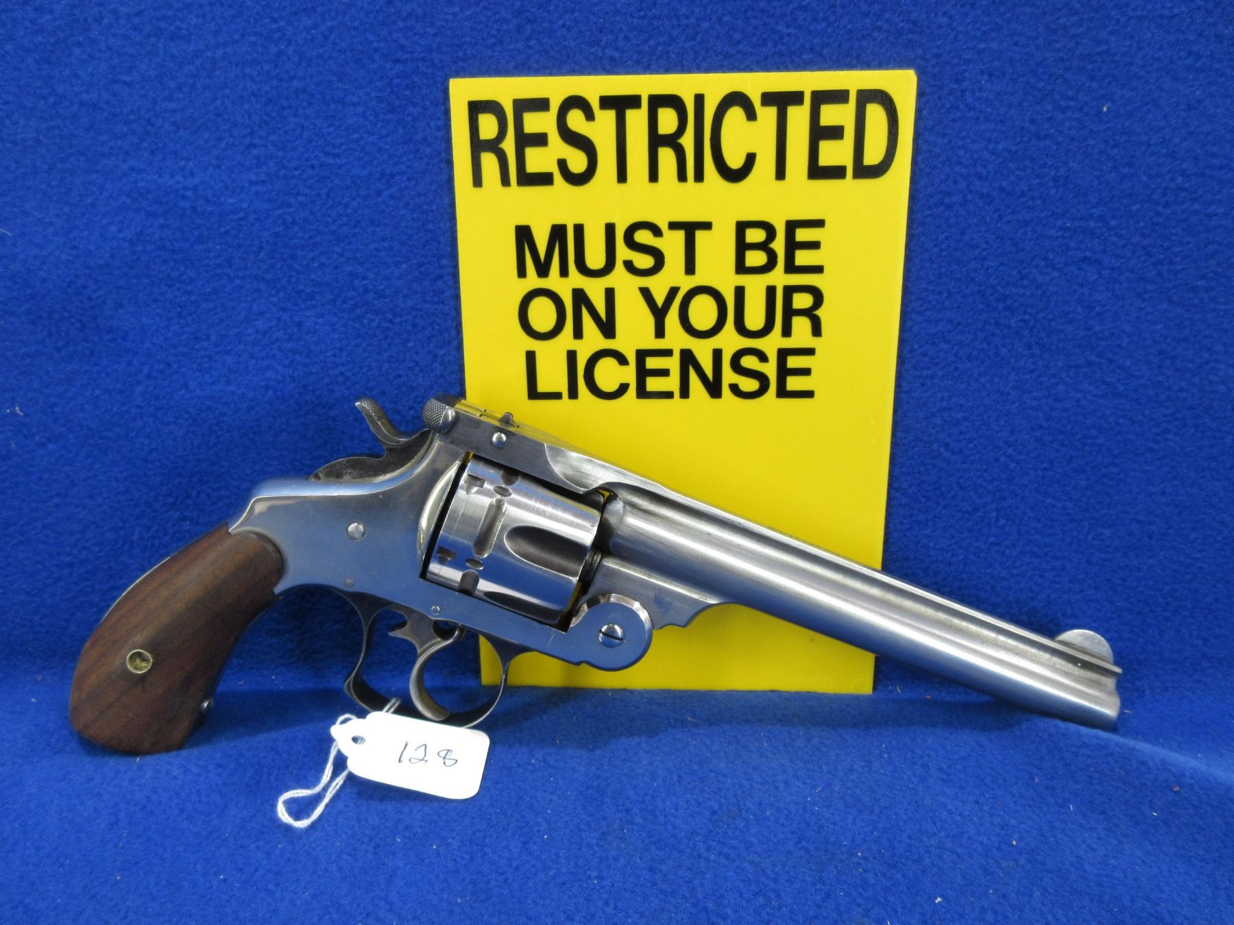 Restricted - Smith & Wesson Model 44DA in 44-40 Cal. - This double action top load 6 shot revolver appears to be in good to very good working order. Barrel is 165MM, rifling good, nickel finish on action is good to very good, barrel and cylinder are polished (looks to be professionally built from 2 guns), has fixed sights, wood grips are good. Ser # 6140