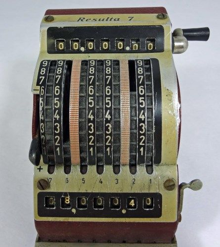 Resulta 7 Deluxe Quiet Antique Adding Machine, made in West Germany with cover. Some wear on machine and cover is torn. Est Value $30-50.00