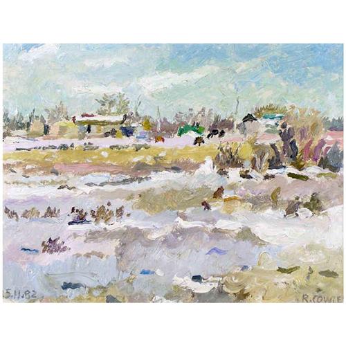 [Canadian CSPWC 1910-2004] SNOWY PASTURE AND STUBBLE; 1982 Oil on board 9 x 12 in. Signed, titled & dated.