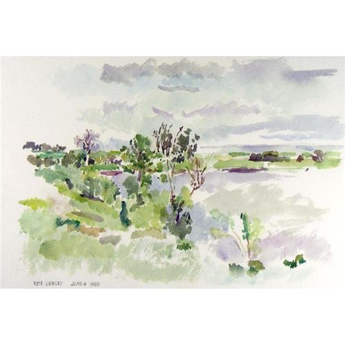 Canadian CSPWC [1910-2004] BRUNEN PLACE IN JUNE; 1985 watercolour on paper 15 x 22.5 in. (38.1 x 57.2 cm) signed, titled & dated Provenance: Private Collection, Ralph Hedlin and Heidi Redekop, Calgary