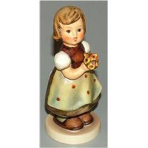 Larger Goebel Hummel 'For Mother' based on the artwork of Sister M.I. Hummel and produced by W. Goebel Porzellanfabrik.<p>Realistic in every detail of Sister Berta's drawing, this adorable little creature brings the gift of flowers. Figurine is of the larger more valuable 5 inch size and is just as perfect in condition as its design.<p>Bears the Goebel trademark #4 backstamp, Stylized Bee, W Germany underbase with incised #251 and dated 1963. Signature of M.I. Hummel and banner title on base. Will come to you in its original styro protective box with original Wise Jewelers retail sticker (authorized retailer) and Goebel paper label.