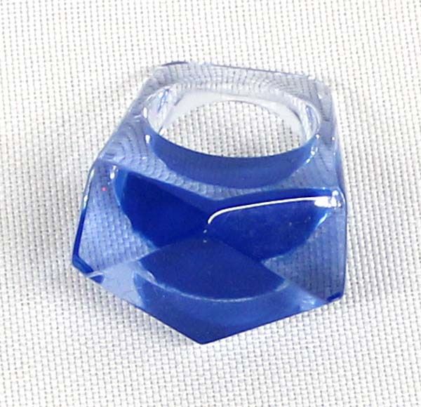 Estate Retro 1960s Mod Chunky Clear Blue Lucite (Bakelite?) Ring, size 6.5
