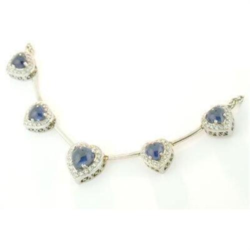 Fabulous custom made necklace from the 1950's Retro era. This fabulous necklace features 5 cabochon cut heart shaped natural 6.83tcw sapphires of rich deep blue. These fabulous sapphires are accented by 1.95tcw of sparkling white diamonds. Each sapphire is mounted individually in heart shaped masterly crafted lustrous 14k white gold as is the chain. The necklace weighs 19.2 grams and measures 18 inches. The necklace is appraisal priced at $5,999.00