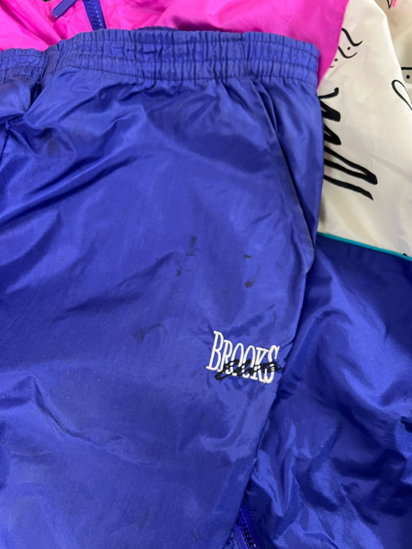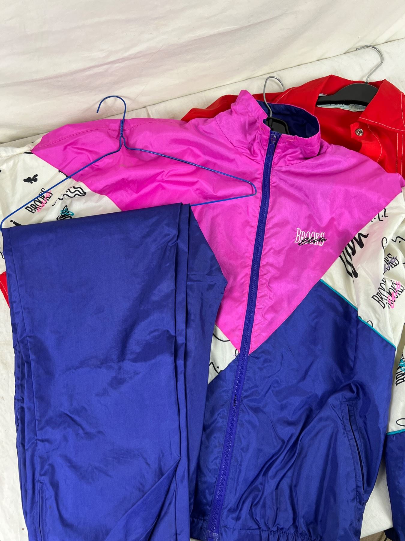 Includes Brooks Elite tracksuit which has some staining on pants. Sizes approximately small. Vest is reversible.