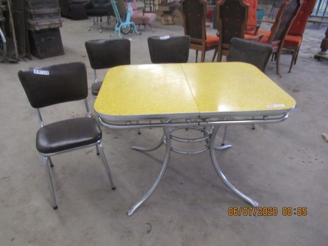 Retro Chrome Legged Table w Nice Bright Yellow Top & 4 Chrome Legged Chairs - Vintage