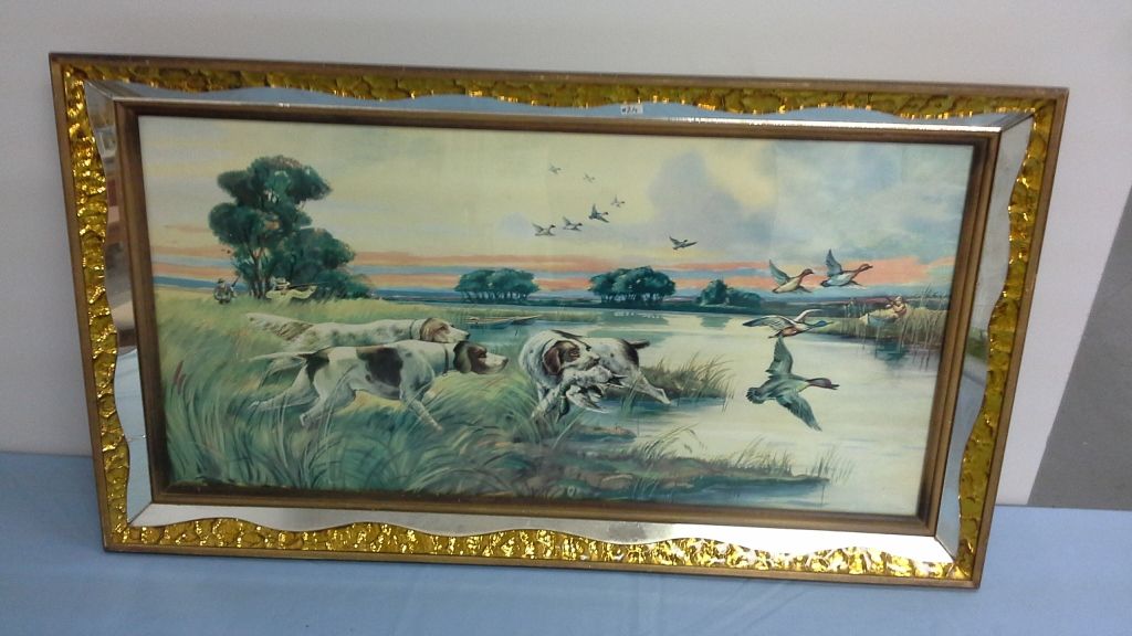 Retro Framed Hunting Dogs Print (crack in frame glass)