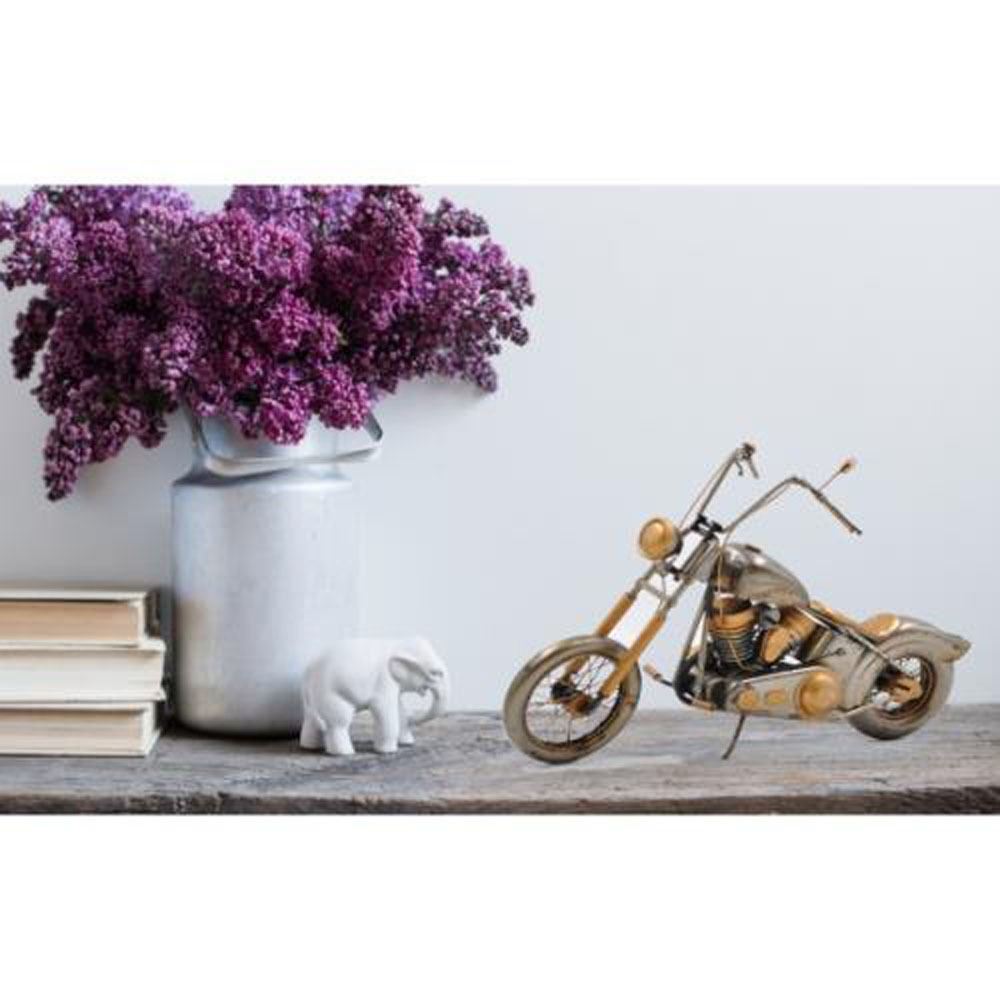 Beautifully handmade and so each piece is a unique collectible and show piece for your home. Decoration parts comes with stickers to match your scene, Plastic die cast metal, Ultra precision design with some moving parts where applicable, Decoration parts decals accurately reproduced. Decorate for any table, desk, or shelf in sporty fashion with Our Rustic Iron Harley Davidson Bike Sculpture. Featuring a rustic iron frame, this charming vintage Motorcycle includes detailed craftsmanship . The silver and Gold metal seat and handlebars are finished in natural colors. Size: 9X13X9 Inches. Weight: 10 LBS.