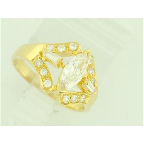 Big bold designs are all the rage and this retro beauty fits the bill. Bold daring design in 14k yellow gold is adorned with a sparkling 0.65ct Old European Cut marquise shaped diamond. This fabulous diamond is accented by 0.35tcw of sparkling round and baguette diamonds throughout the mounting. Treasured ring from the 1970's. Make a statement with this fabulous vintage piece. This ring weighs 3.3 grams and a size 5. This ring is appraisal priced at $2,999.00.