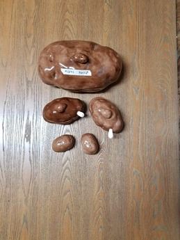 Large potato dish for holding baked potatoes, Medium sized potato serving dish with spoon for sour cream, Medium sized potato serving dish with spoon for chives/onions, Potato salt and pepper shakers.