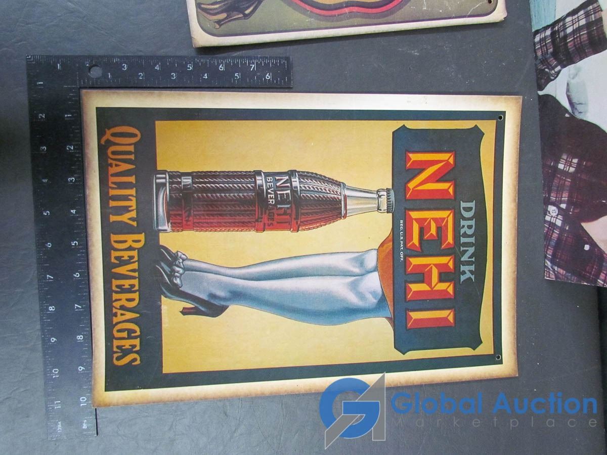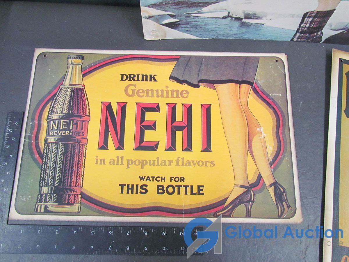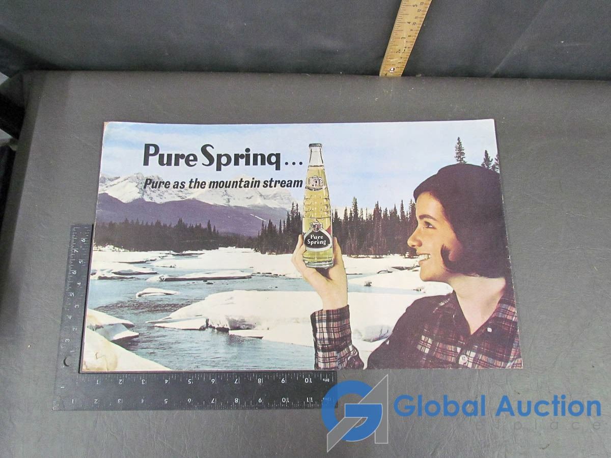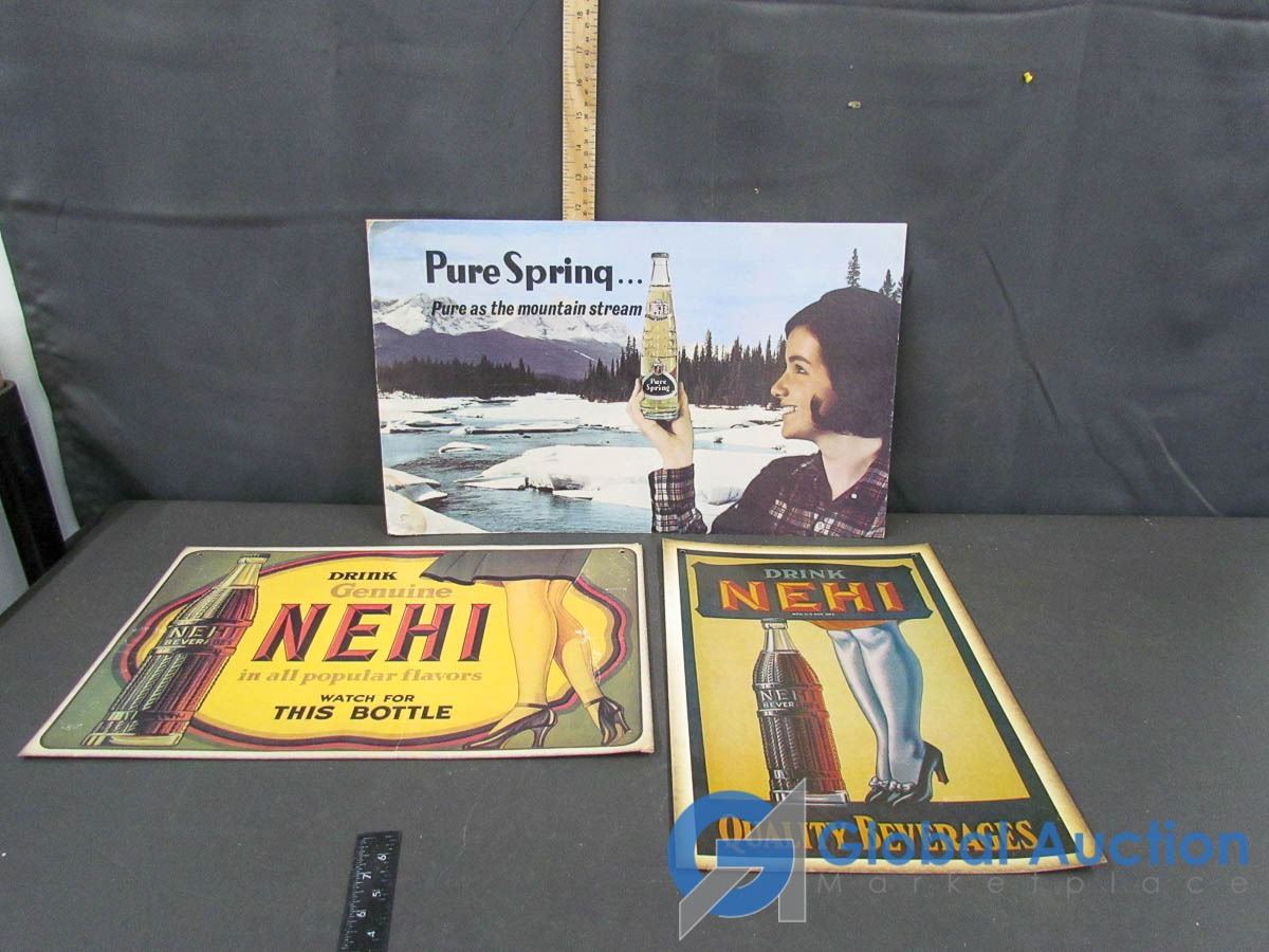 Retro: PureSpring Advertisment Sign, & (2) Nehi Advertisment Signs