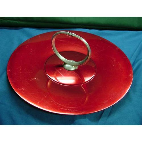 Wow what a rare 1950's anodized aluminum Red tray. It has a silver handle in the middle and would have been like a tidbit tray or server for a luncheon that used to be so popular in those days. It measures 12 1/2" across. Very Retro! Treat yourself to this wonderful collectible item! I sure hope you have fun shopping in my store, please visit again and bookmark me so you can find me easily! Please email me any questions you have and to ask for shipping costs. I welcome International and USA buyers and I also combine shipping. Please check out my favorite sites for my other great places to go, for my auctions, and my Blog about Antique and Collectible Collecting is FUN!