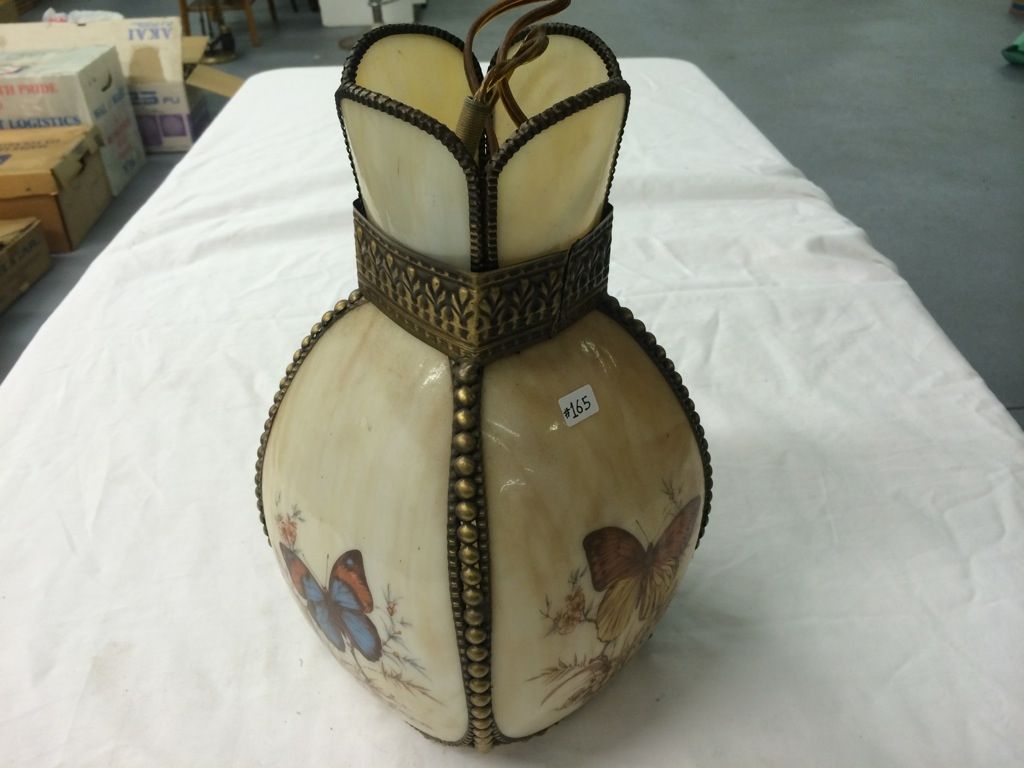 Retro Stain Glass Hanging Light With Butterfly Motif