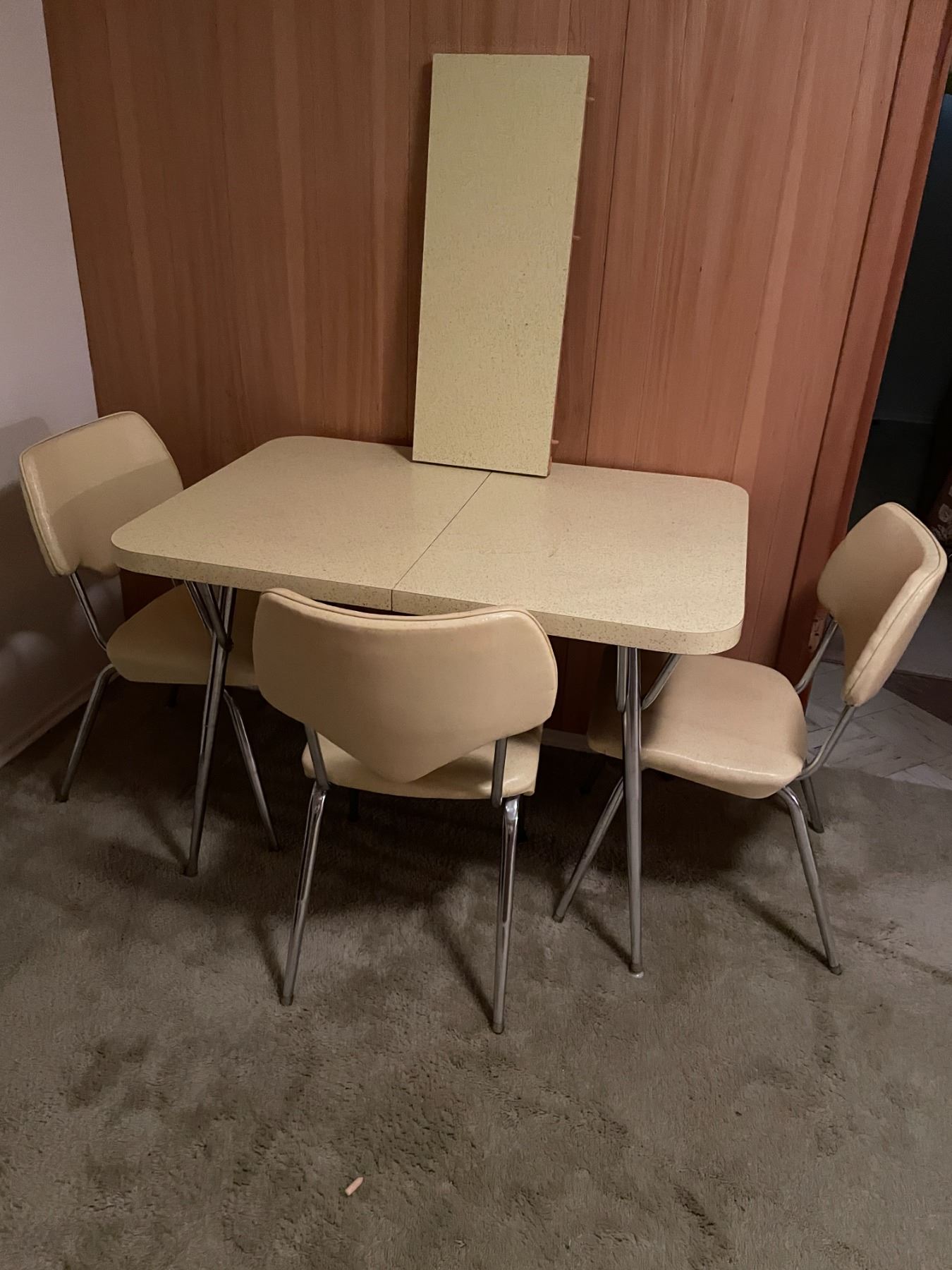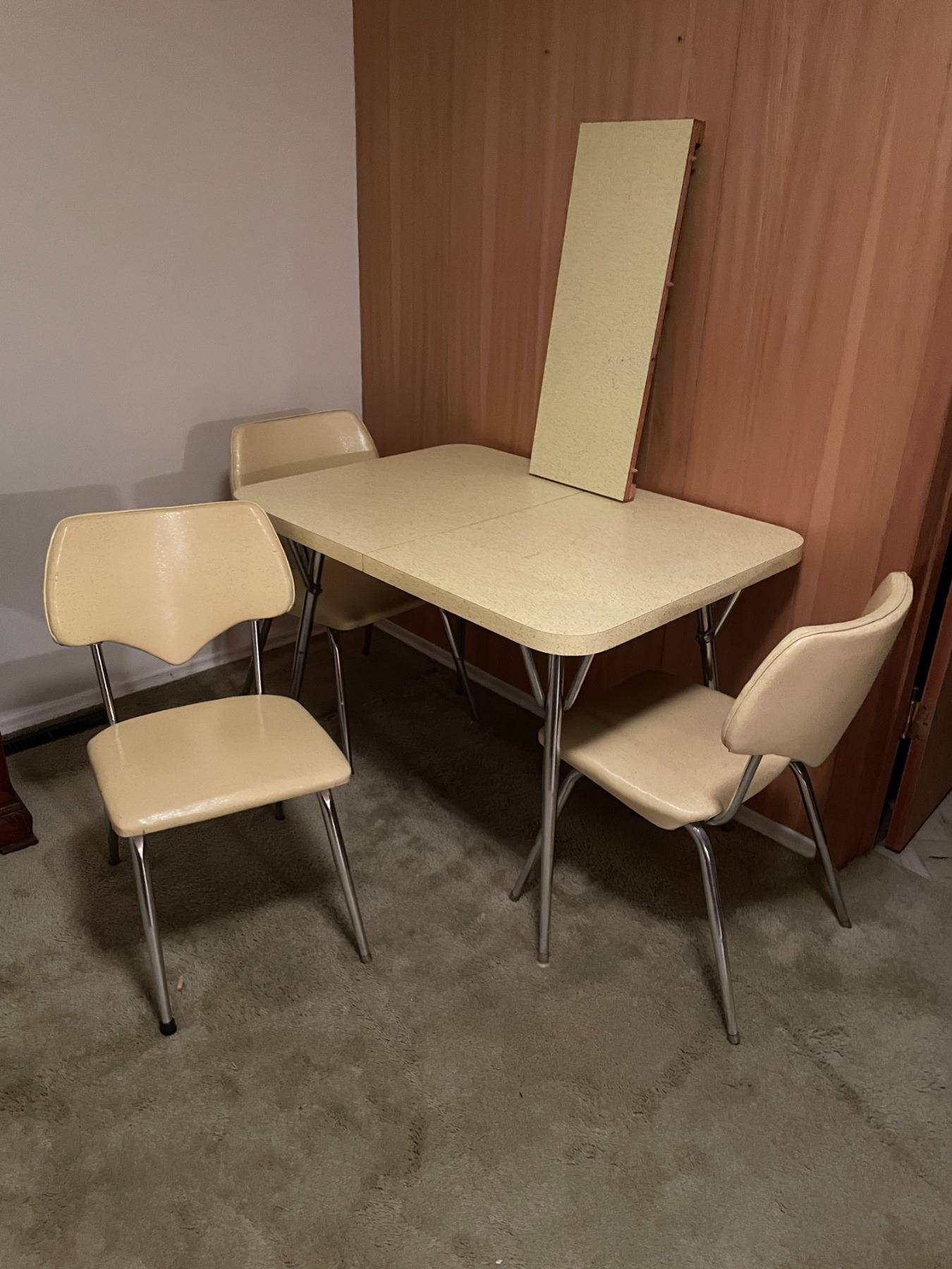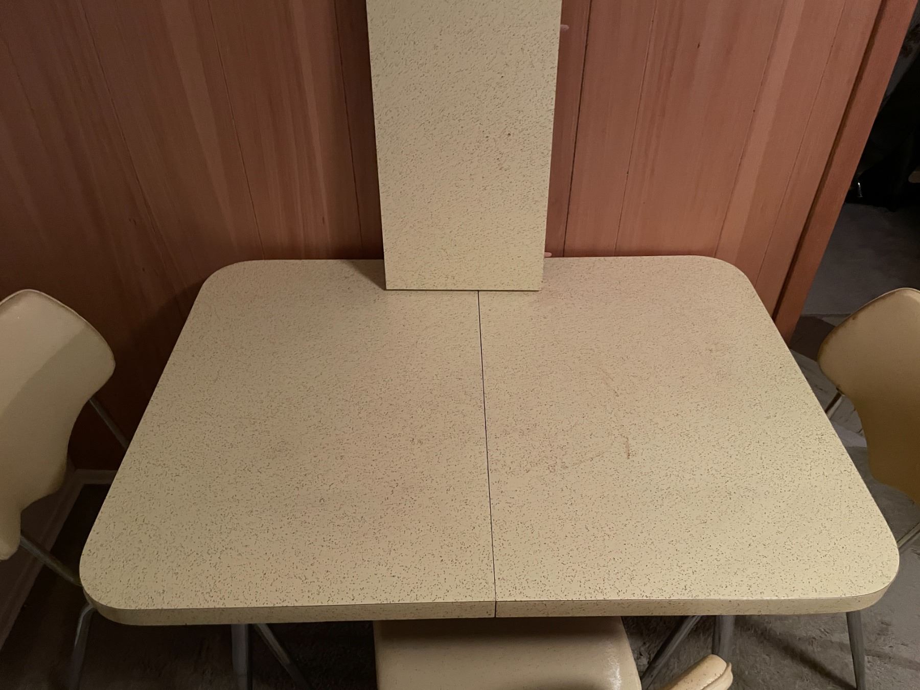 Comes with 1 leaf. Table dimensions 41" long x 30" wide. Leaf is 11.5" wide