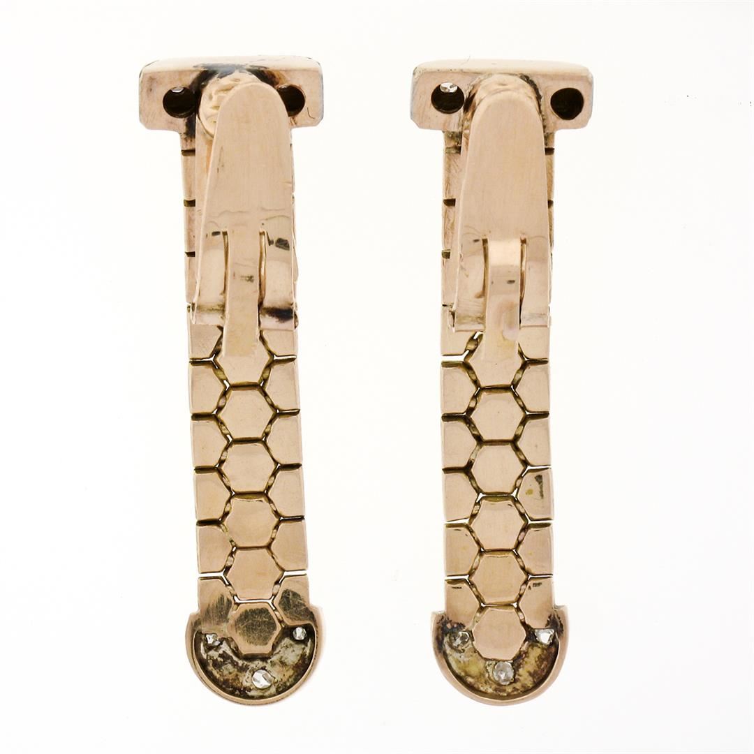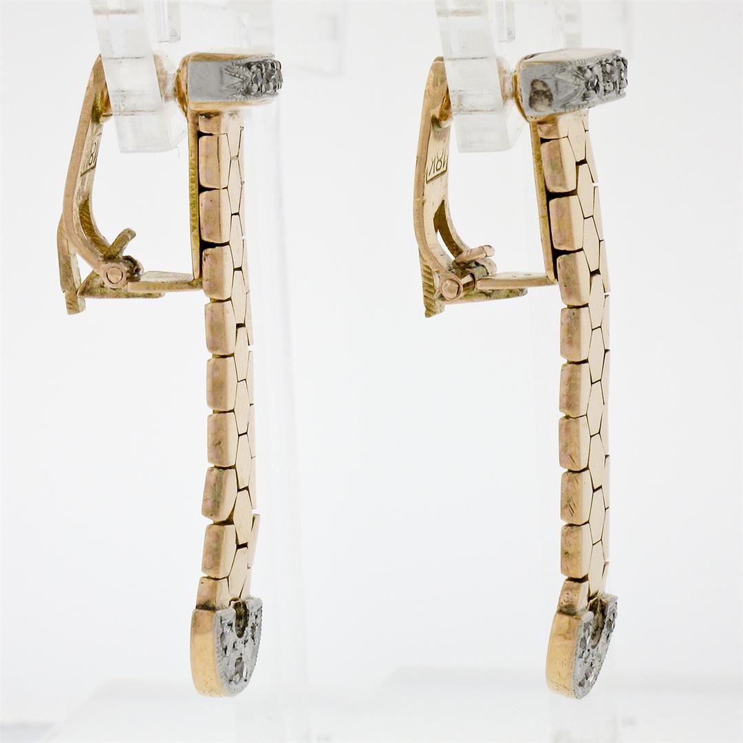 A vintage solid 18k rosy yellow and white gold flexible clip on earrings. featuring 12 rose cut natural diamonds ( G/H - VS2 ; 0.30ctw). The earrings measure approximately 37.60x10.35mm and weigh a total of 11.28 grams.
