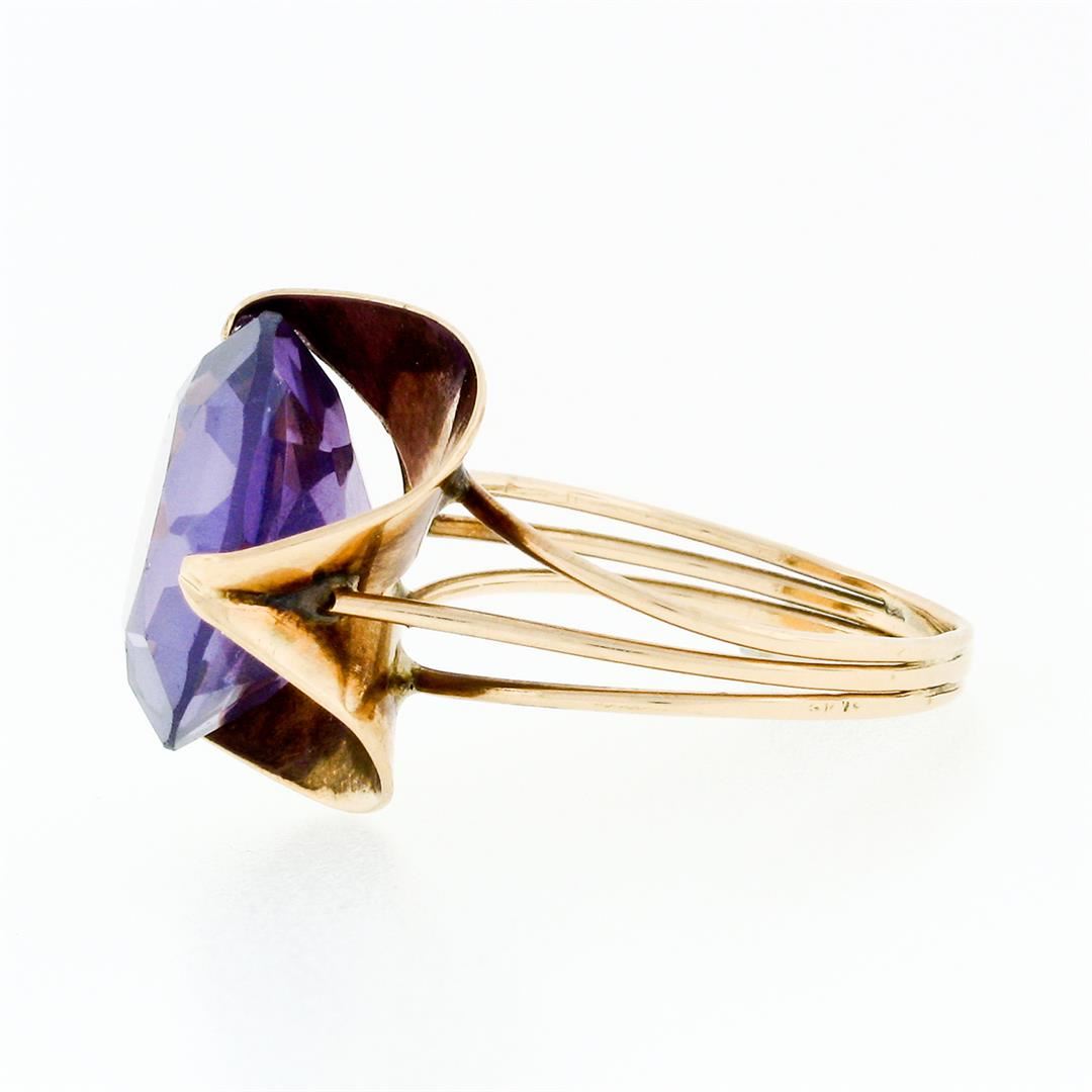 Retro Vintage Handmade 14k Rose Gold 13.7mm Synthetic Alexandrite Solitaire Ring