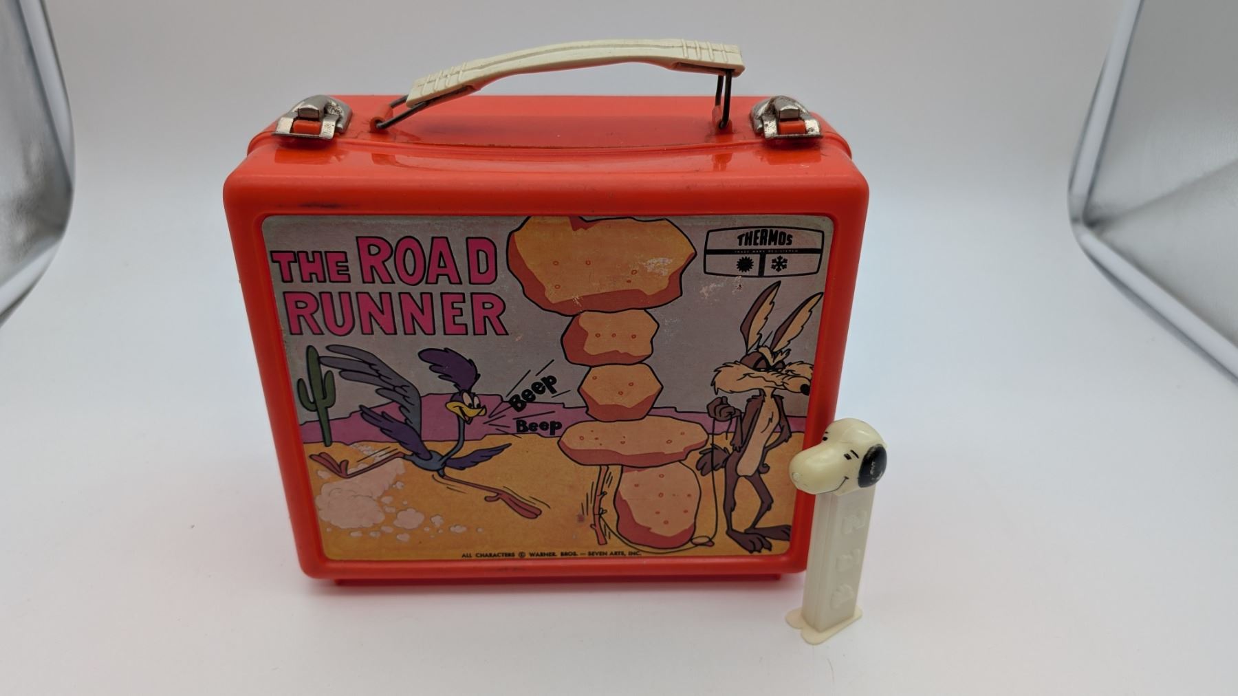 Retro collectors Road Runner lunch box and snoopy PEZ