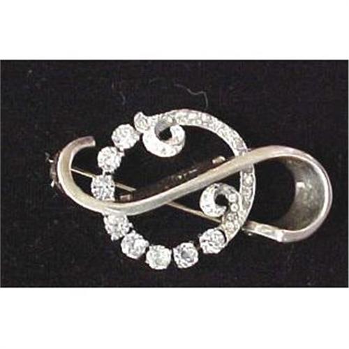 This is a pretty retro pin in a elongated squate with a circle of rhinestones. It is in excellent condition.