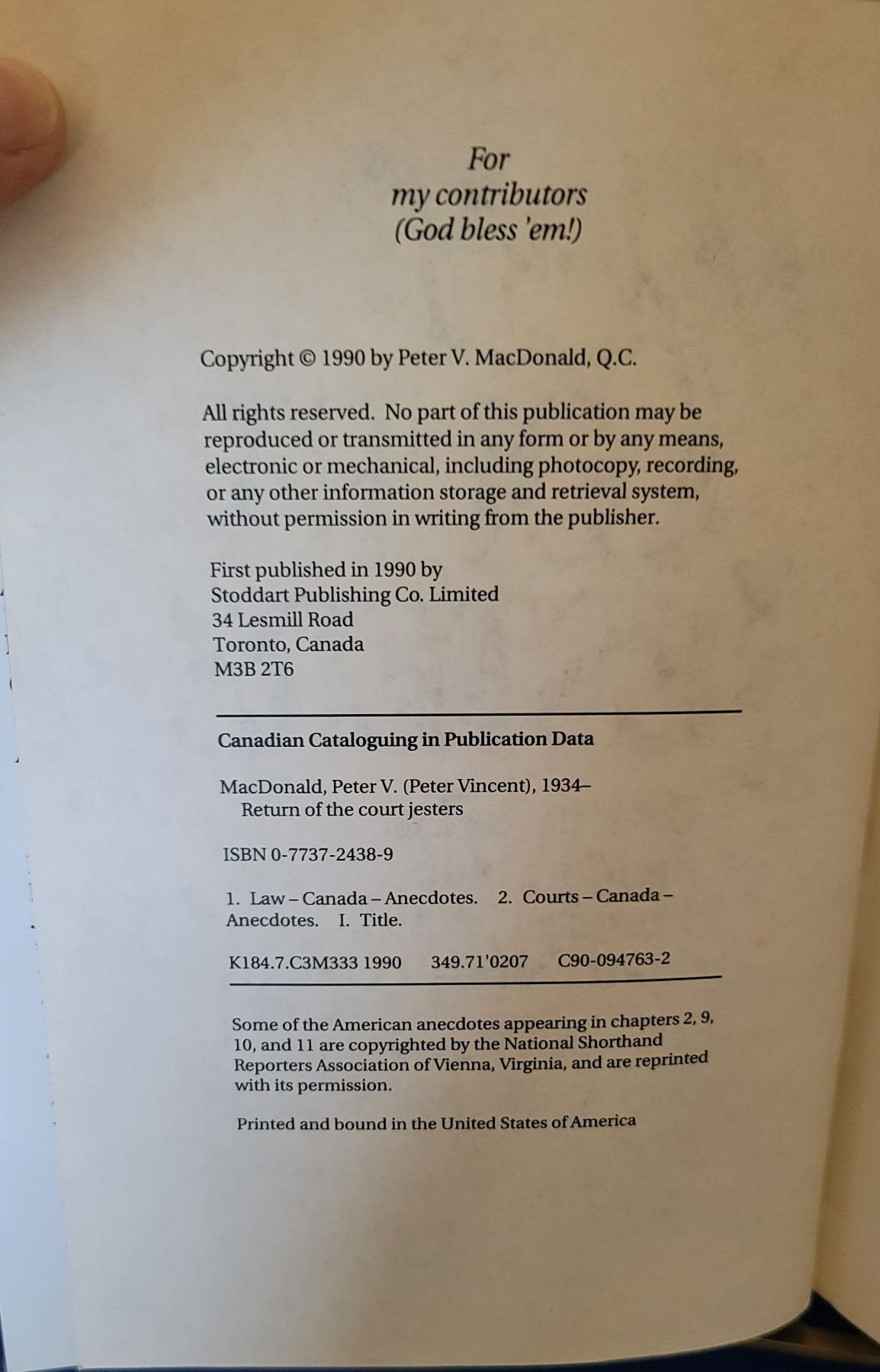 Author: Peter V. MacDonald. First edition published in 1990. Hardcover with jacket.