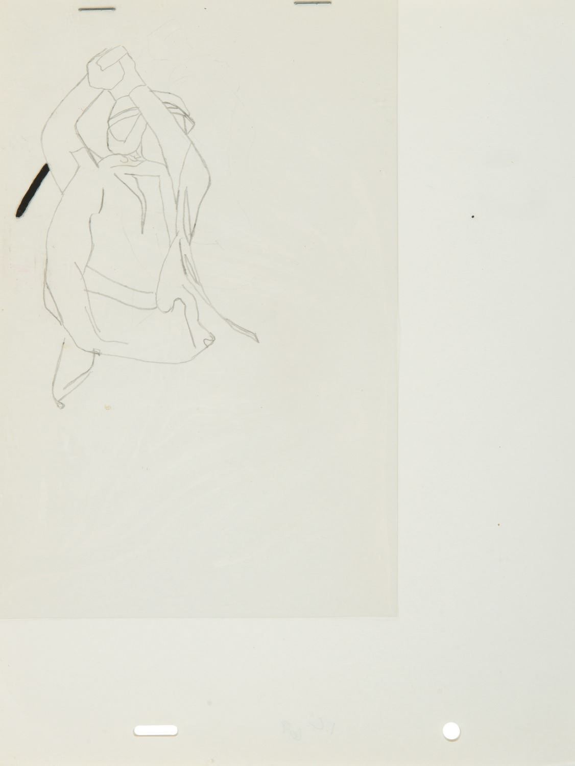 (ILM/Lucasfilm, c.1983) An extremely rare rotoscope special effects sketch and cel used in the production of Star Wars: Return of the Jedi. The sketch depicts Luke Skywalker, with his lightsaber drawn, from the memorable speeder bike chase sequence on Endor. The piece measures 10.5"x8" with a combined image size of 5"x3.75" and is in fine condition with only minor wear from intended use.