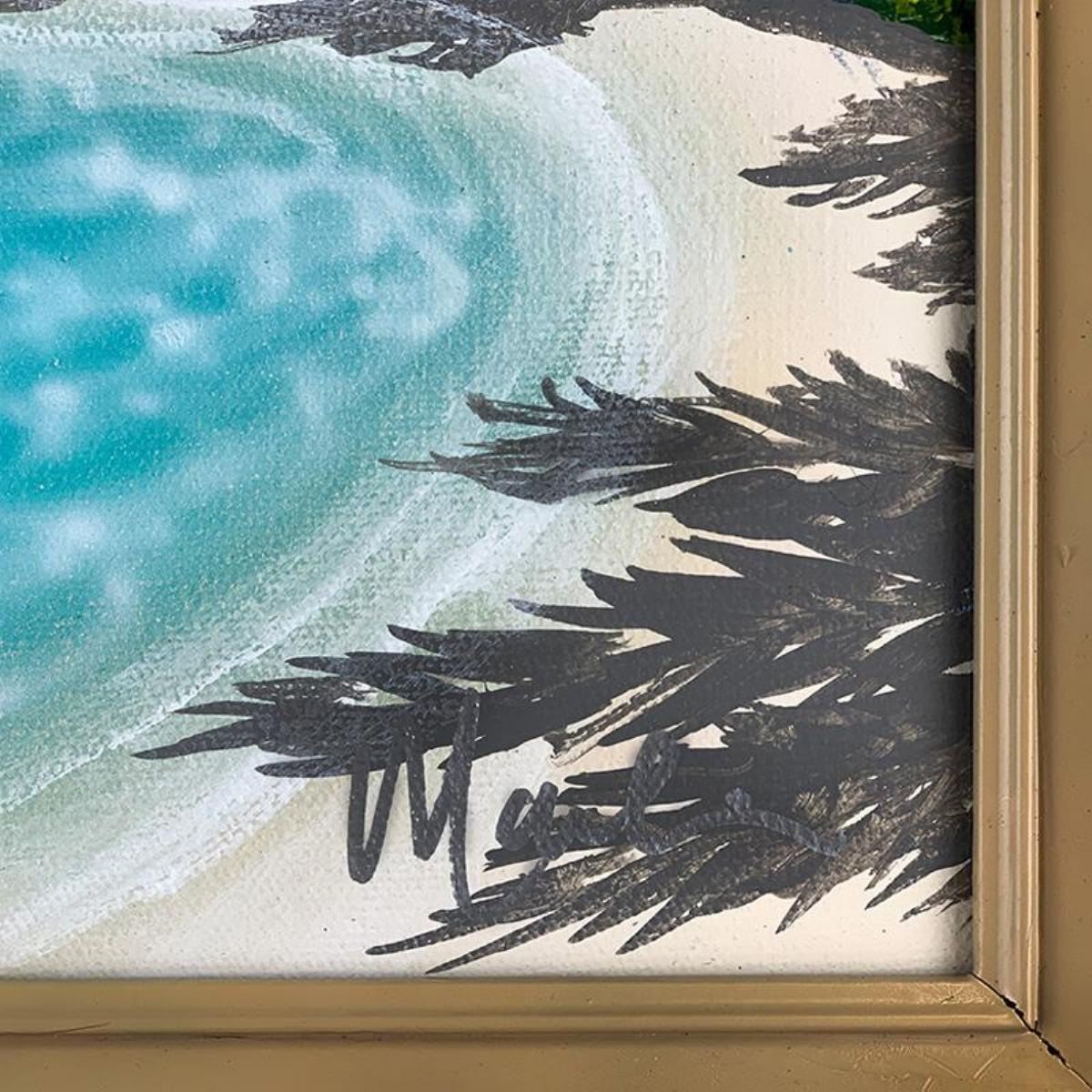 "Return to Sea" is an original acrylic painting on canvas by Dan Mackin. Hand signed by the artist, this piece comes framed and with a letter of authenticity. Measures approx. 17.5" x 14.5" (framed), 12" x 9" (image).