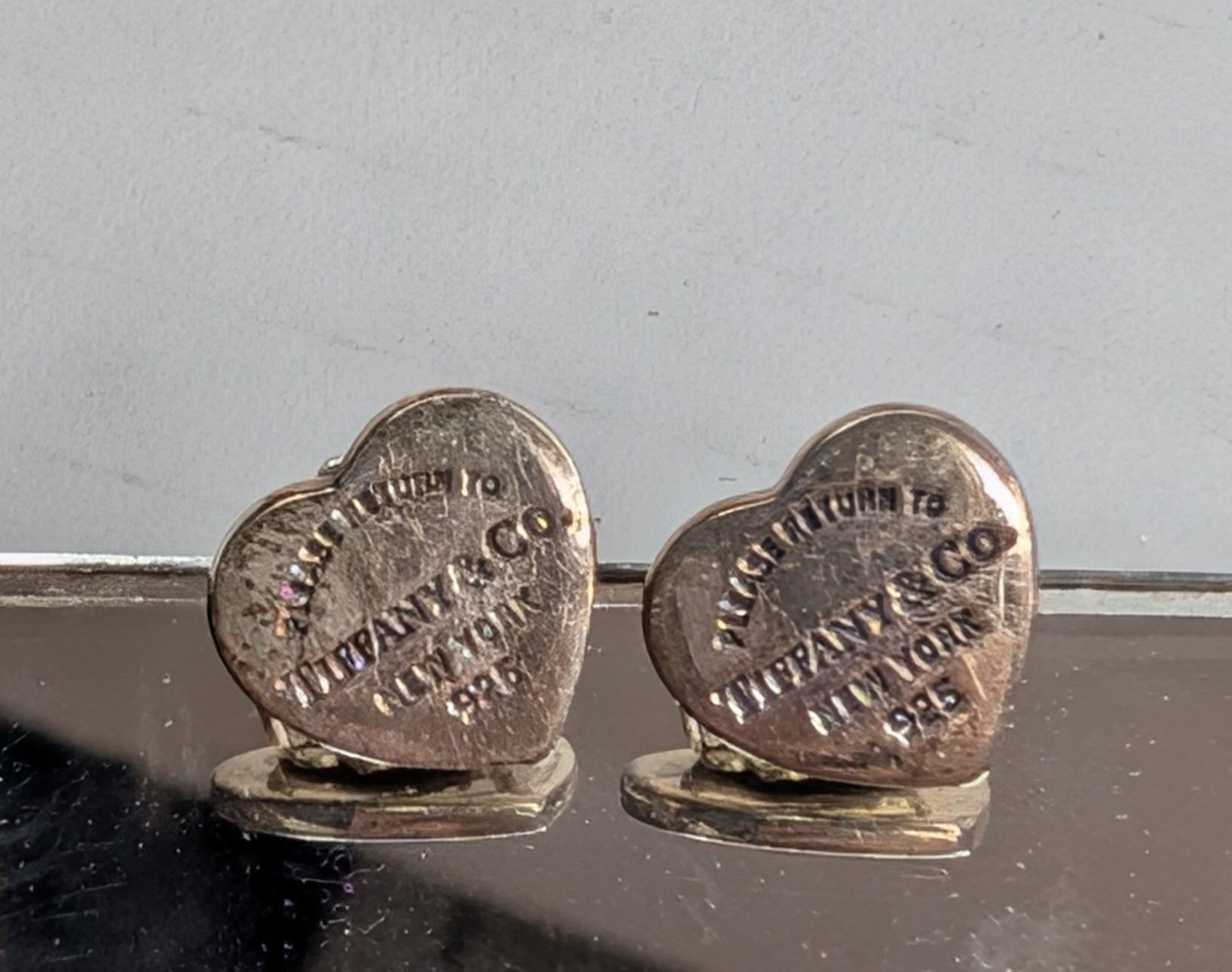 T&Co. mini heart Sterling Silver 'Return to Tiffany' stud earrings with gift receipt