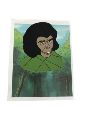 Return to the Planet of the Apes (DFE, 1975-1976) - Zira publicity portrait cel. Acetate with hand-painted head of Zira on a color copy background, from the animated series. (8 1/2" x 11).