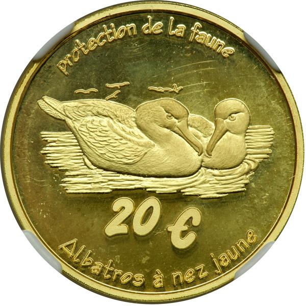 Réunion. Essai 20 Euro, 2004. KM-#XE15. Weight 0.25000 ounce. Wildlife. The Indian Yellow-nosed Albatross. Only 300 proofs struck. With certificate. NGC graded Proof 67 Ultra Cameo.