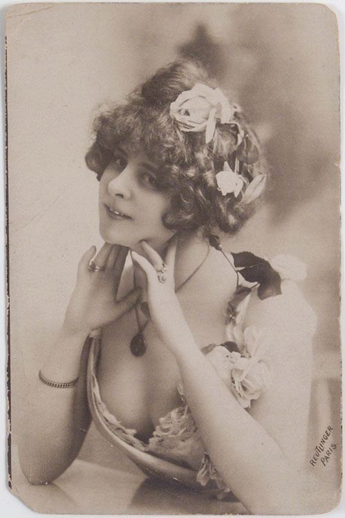 This is an antique sepia-tone photograph of a French actress by Reutlinger, Paris. SIZE: Approx. 3 1/2" x 5 1/2".