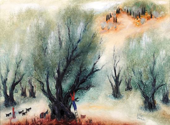 Reuven Rubin, Israeli Art, 1893 - 1974, Olive Trees near Abu-Gosh, 1969, Oil on canvas, 54x73.5cm, Signed. Dated and described on the reverse., , , , Accompanied by a certificate of authenticity from the Rubin Museum, dated 20 May 2010, signed by Ms. Carmela Rubin.,