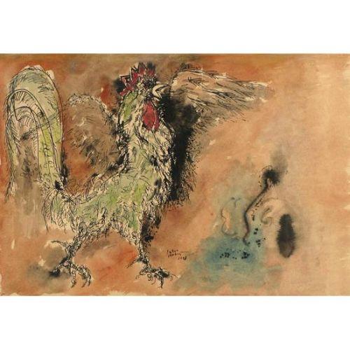 Reuven Rubin, Romanian and Israeli Art, 1893 - 1974, Rooster, 1948, Watercolor, 33.5x48cm, Signed and dated., , , , ,