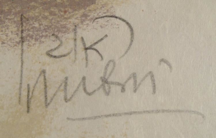 In this print, David gazes out into the evening and his vision is captivated by a beautiful woman bathing outside. The soft greens and blues create an enticing scene. Artist: Reuven Rubin Signature: In pencil, lower right Title: David & Woman BathingMedium: Lithograph on Japon paper Edition: Proof Size: 20 x 25 1/2 inches Condition: Excellent Biography: Reuven Rubin (1893-1947) was born in Romania to a poor, Jewish Hasidic family, and later studied art there, as well as in Paris. He developed a style influenced by the work of Henri Rousseau. In Palestine, he was one of the founders of the new Eretz Yisrael style, with a folk and naive appearance. His subjects were often the biblical landscape, folklore and people. He became quite popular, despite his opposition to the modern art schools of Jerusalem. Today he is recognized as an important figure in the history of Israeli art. His work can be found in many public and private collections around the world.